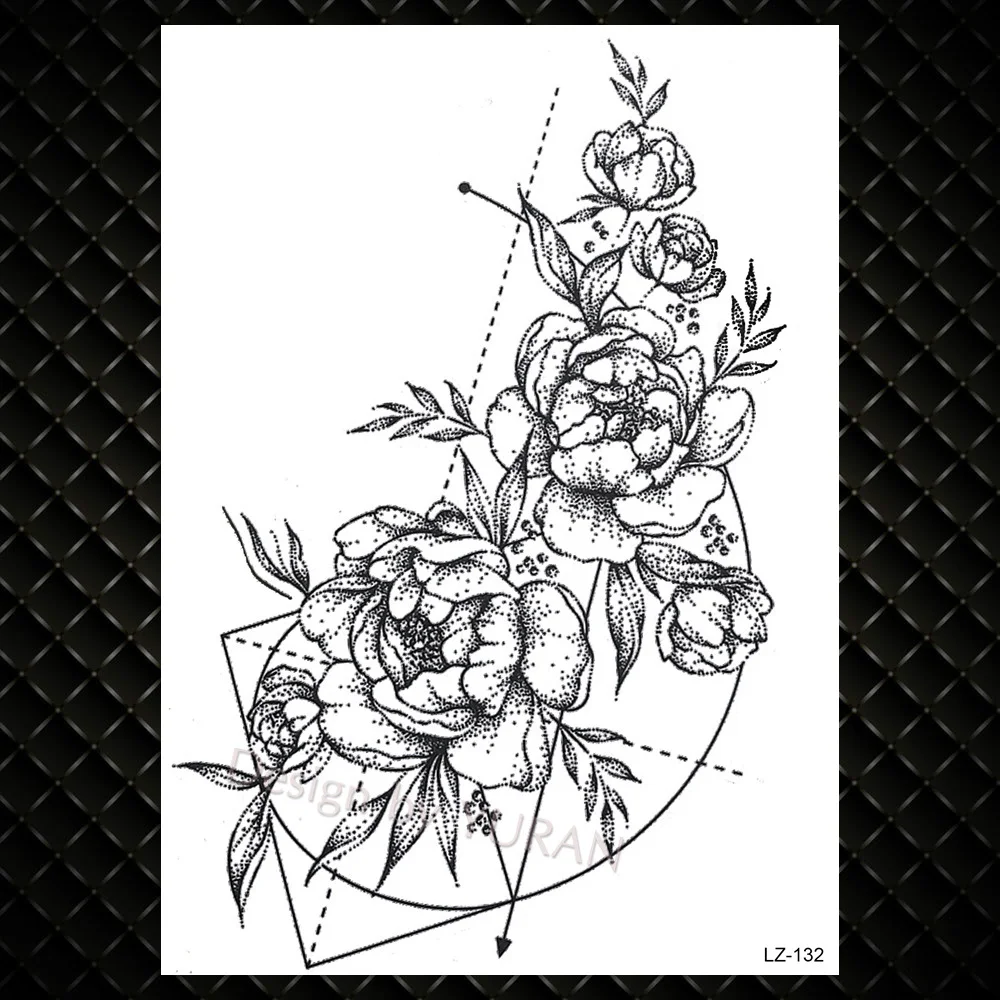 Женская Временная тату-наклейка с компасом и пионами, трехцветная татуировка на руку, имитация искусства тела, Цветочная имитация