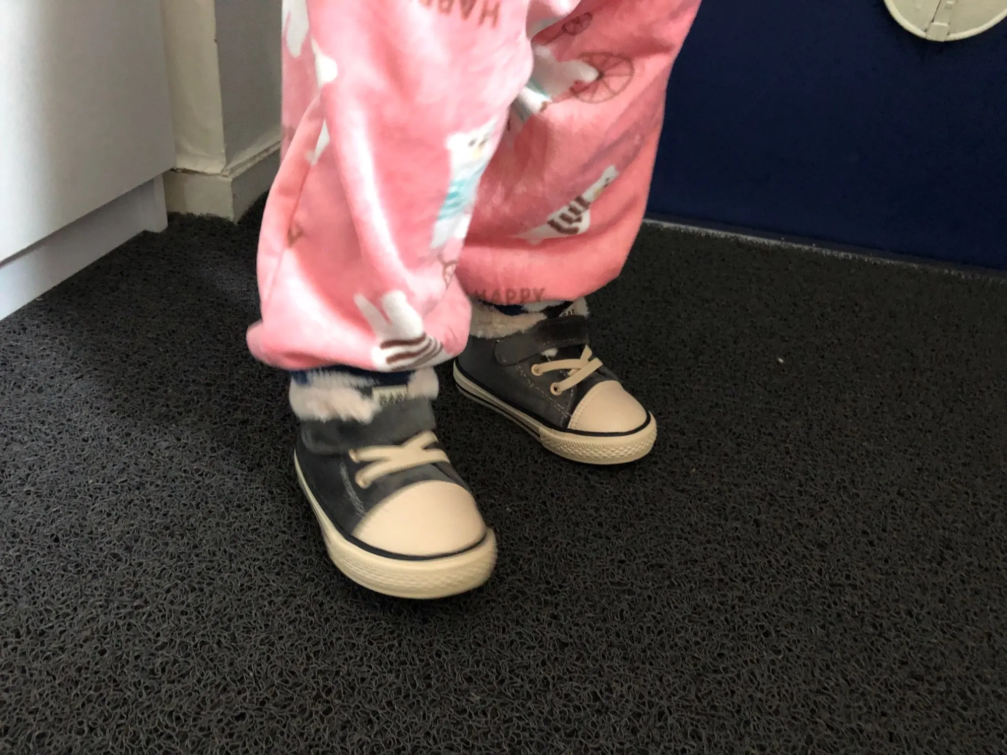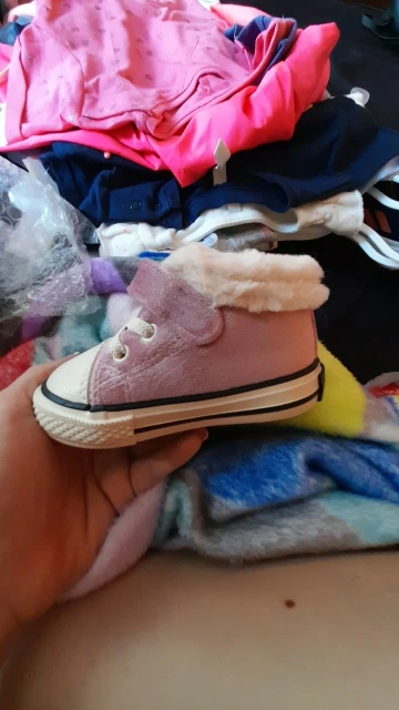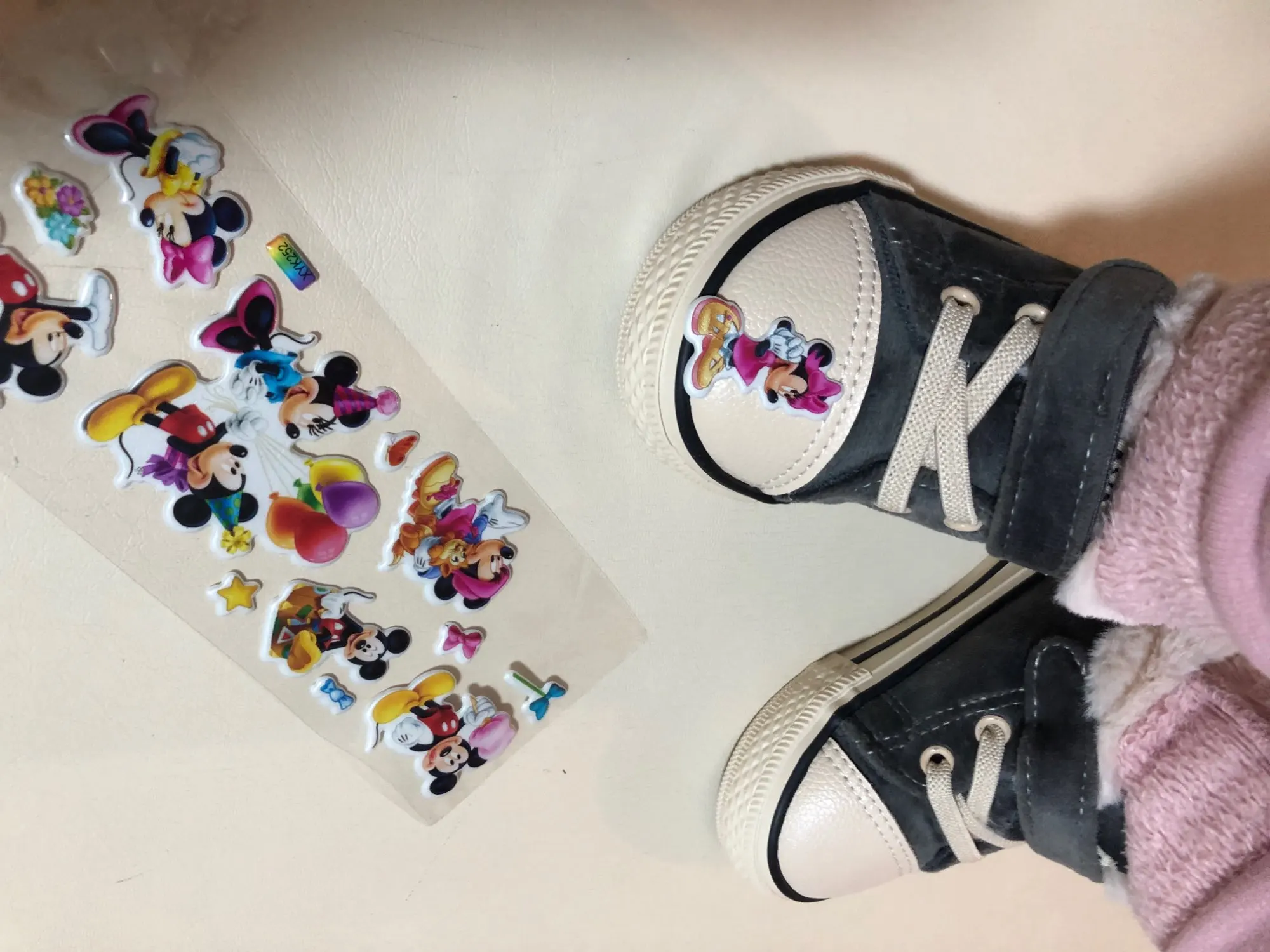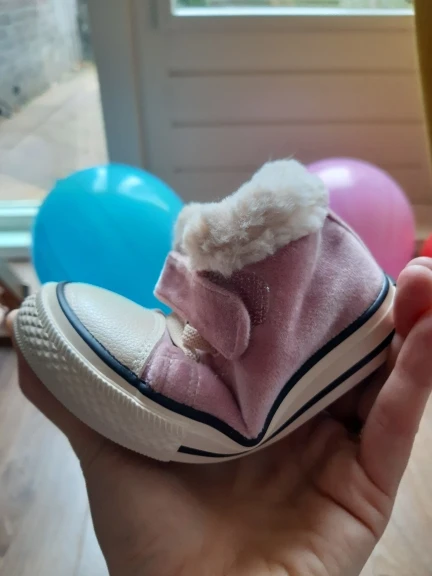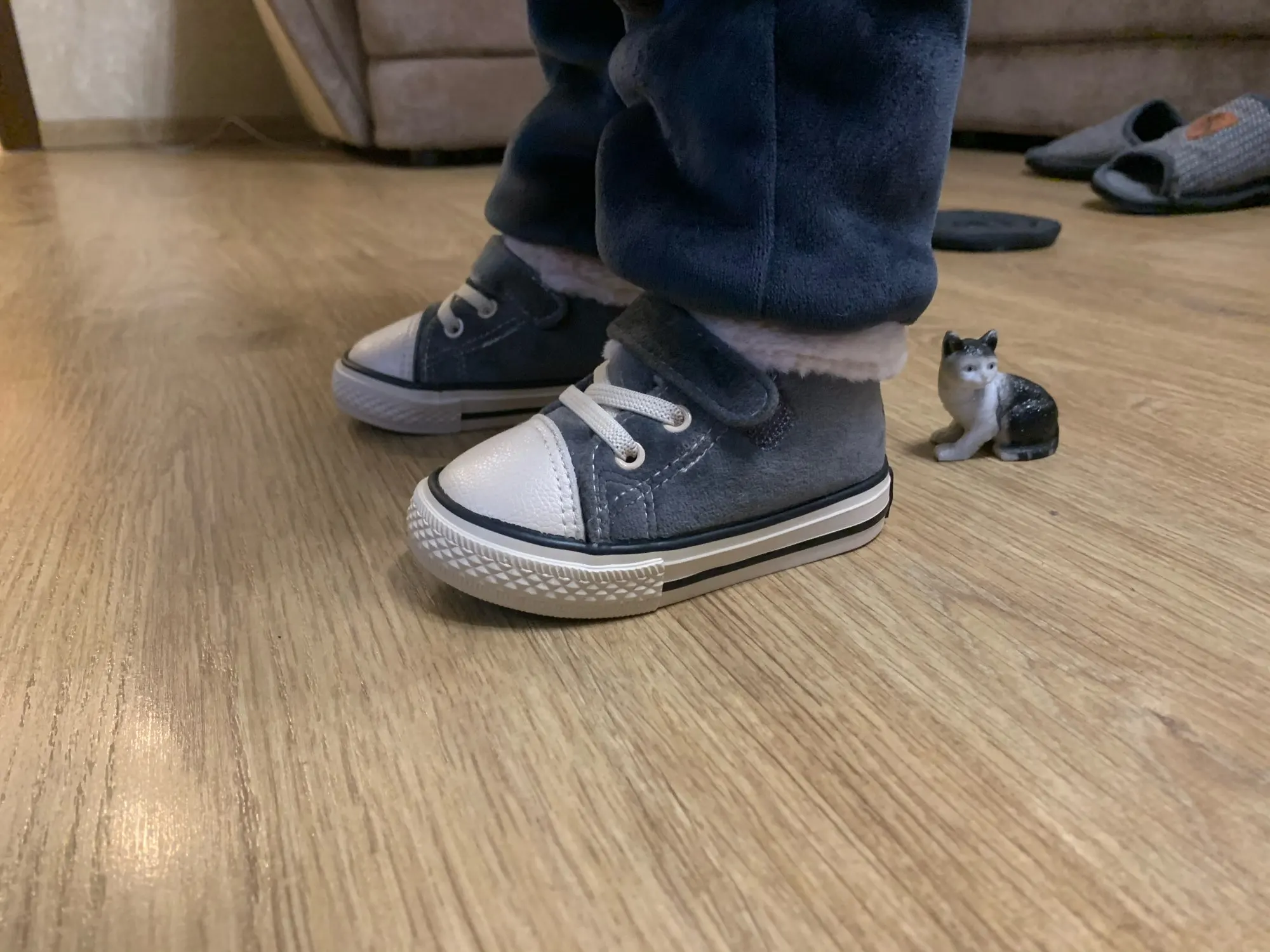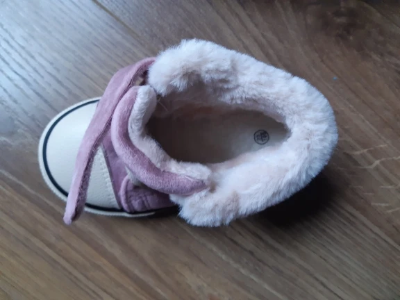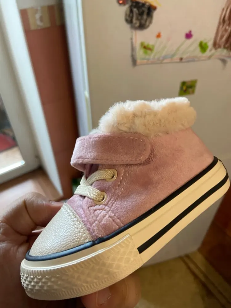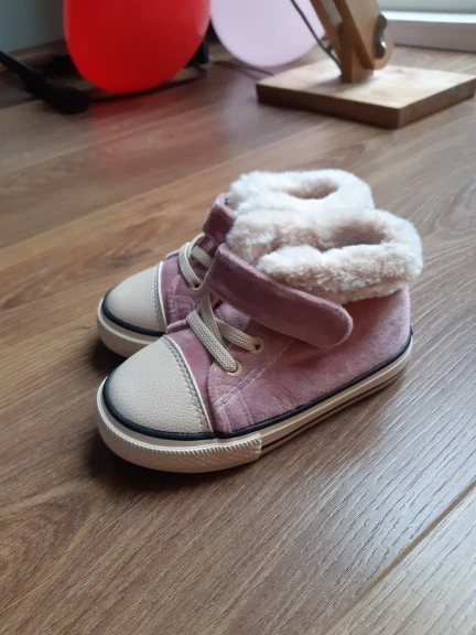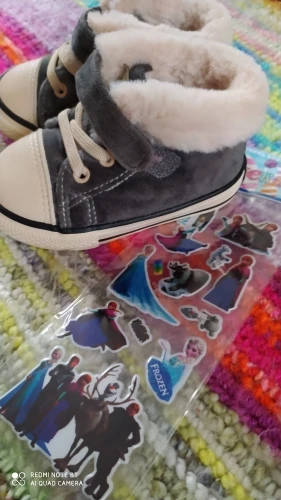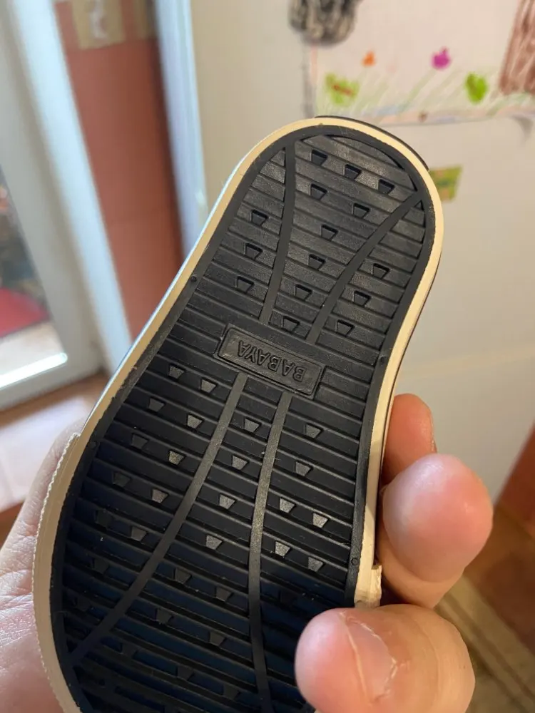 Кроссовки на троечку. Нитки торчат, резинка- типа шнуровка тупа на клей приклеена к меху. Цвет окантовки не белый, а какой-то желтоватый. Понятно, что за такие деньги, качество не будет. Ну так разве что пару раз оденем и выкинем.
