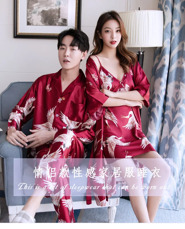 Мужской халат, женский халат, халат для пары, халат для пары, халат для импортной торговли, шелковый халат, ночная рубашка из искусственного шелка, сексуальная ночная рубашка, ночная рубашка для пары, ночная рубашка с тонким поясом, ночная рубашка с длинным рукавом, утренний халат