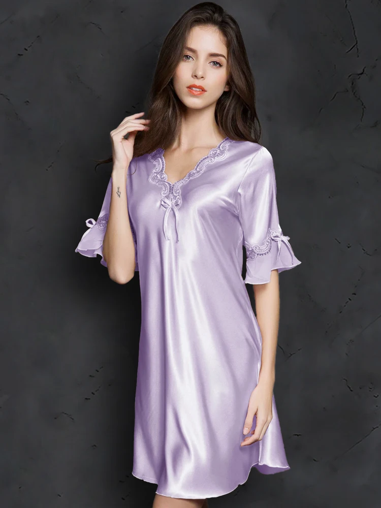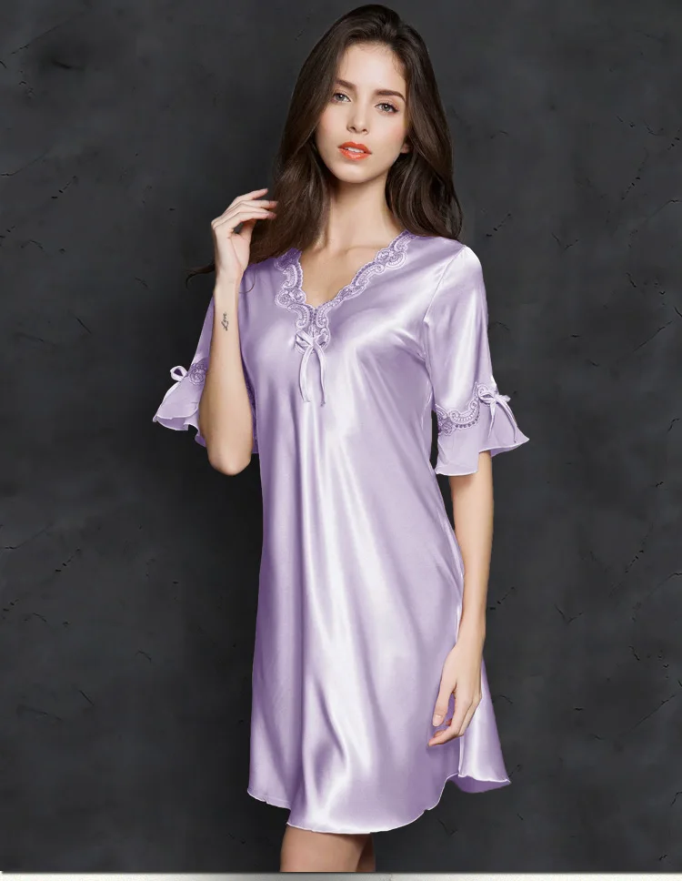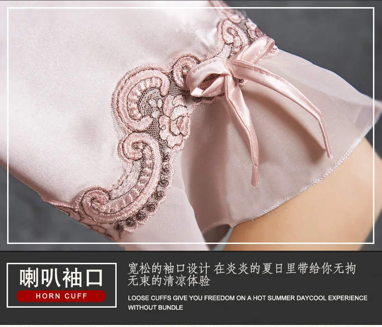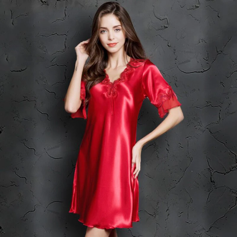 Ночная рубашка с v-образным вырезом, шелковая ночная рубашка с коротким рукавом и кружевной юбкой, сексуальное женское белье