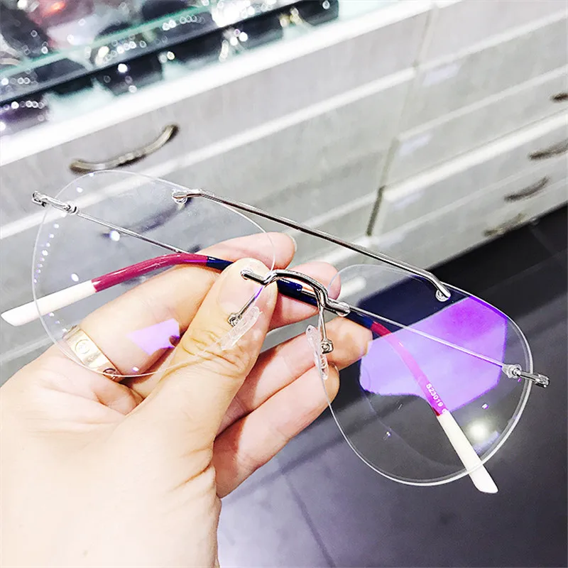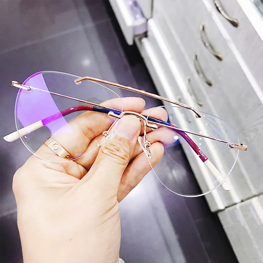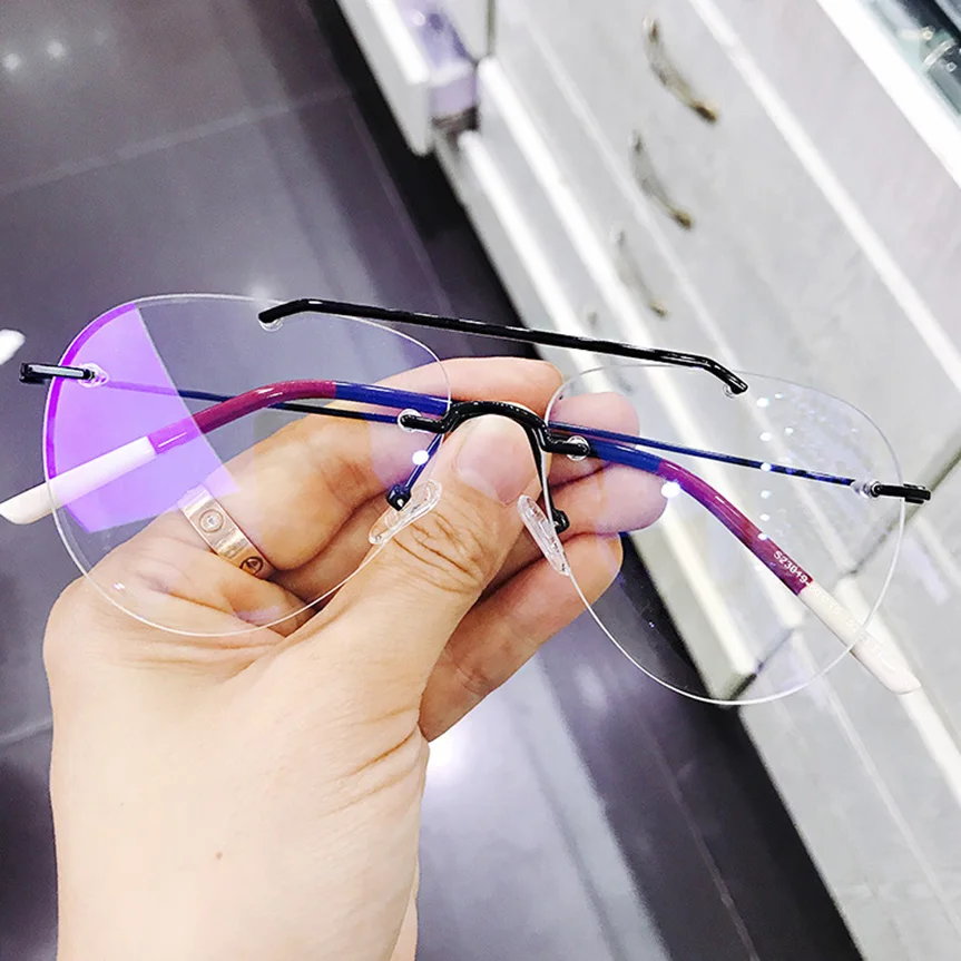 Женские модные очки без оправы Cubojue, бескаркасные очки без оправы по рецепту, прогрессивный анти-синий луч света