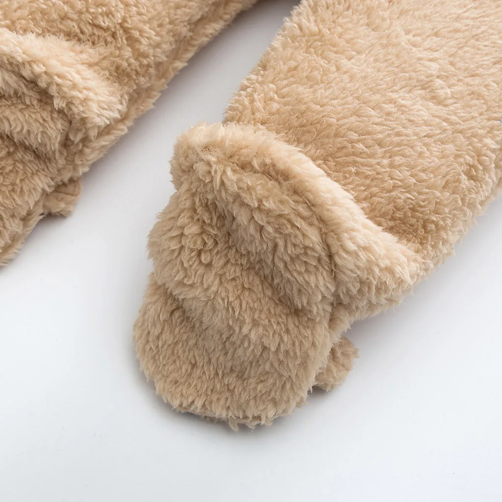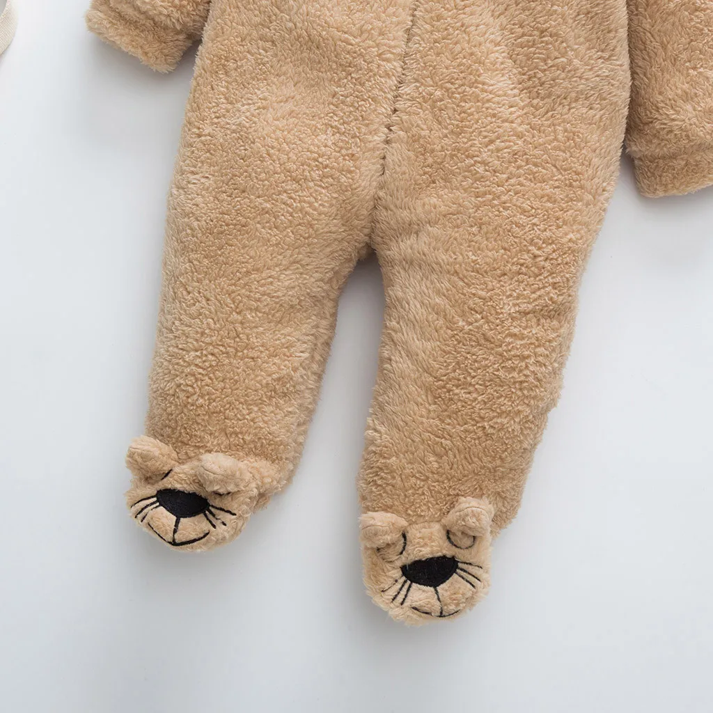 Теплая Флисовая одежда с капюшоном и объемным рисунком для маленьких мальчиков и девочек; Комбинезон