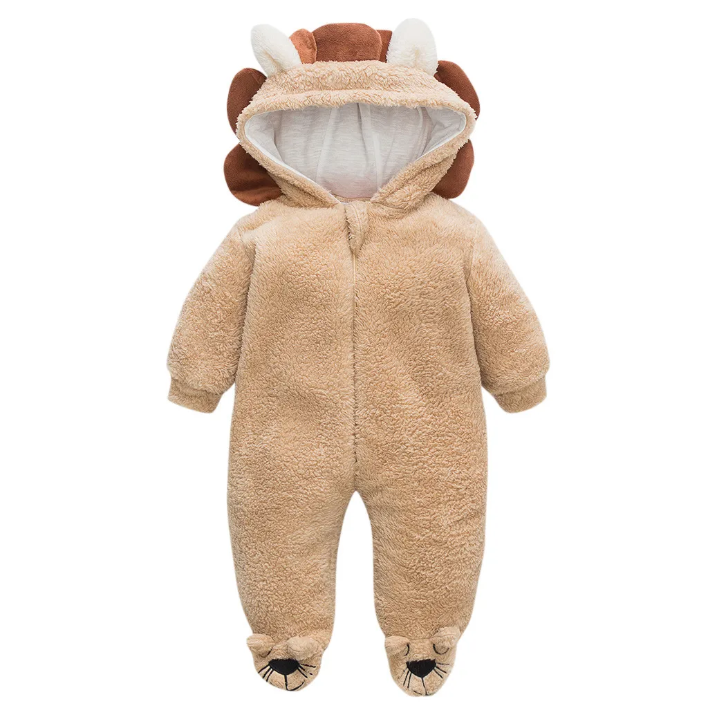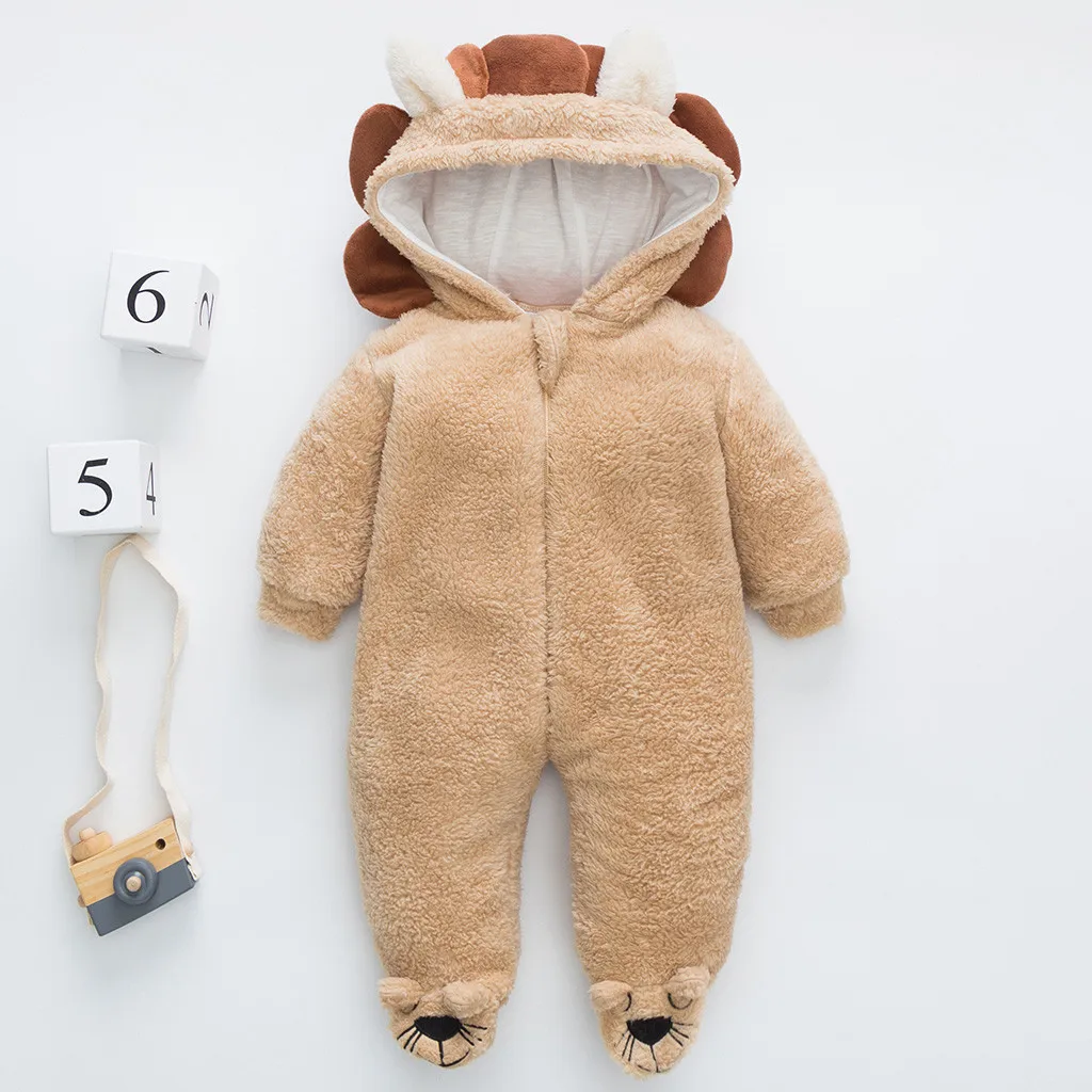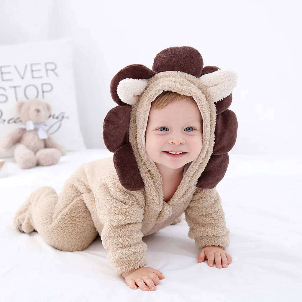 Одежда для новорожденных; Для маленьких мальчиков и девочек зимняя одежда 3D для детей, с рисунком в виде льва, с длинным рукавом, с капюшоном, теплая флисовая Песочник Комбинезон хлопковый наряды # g4