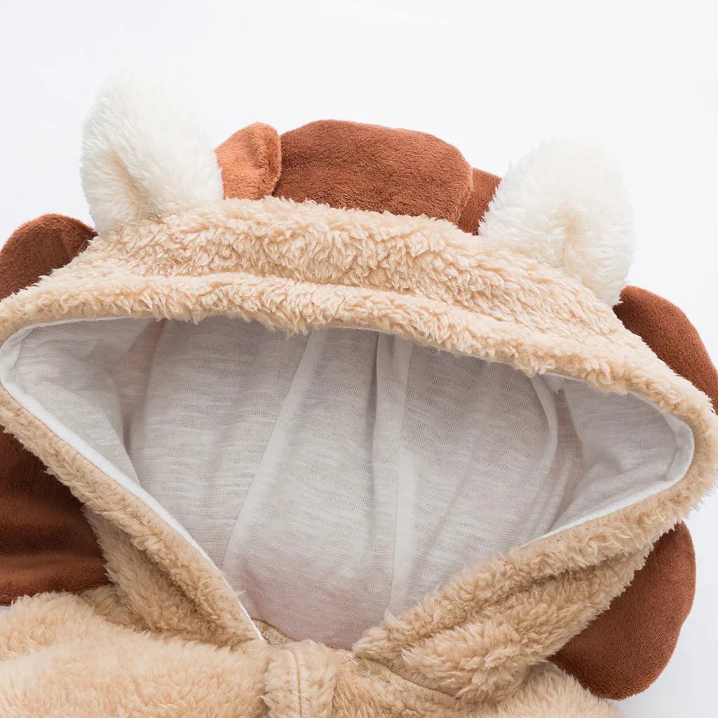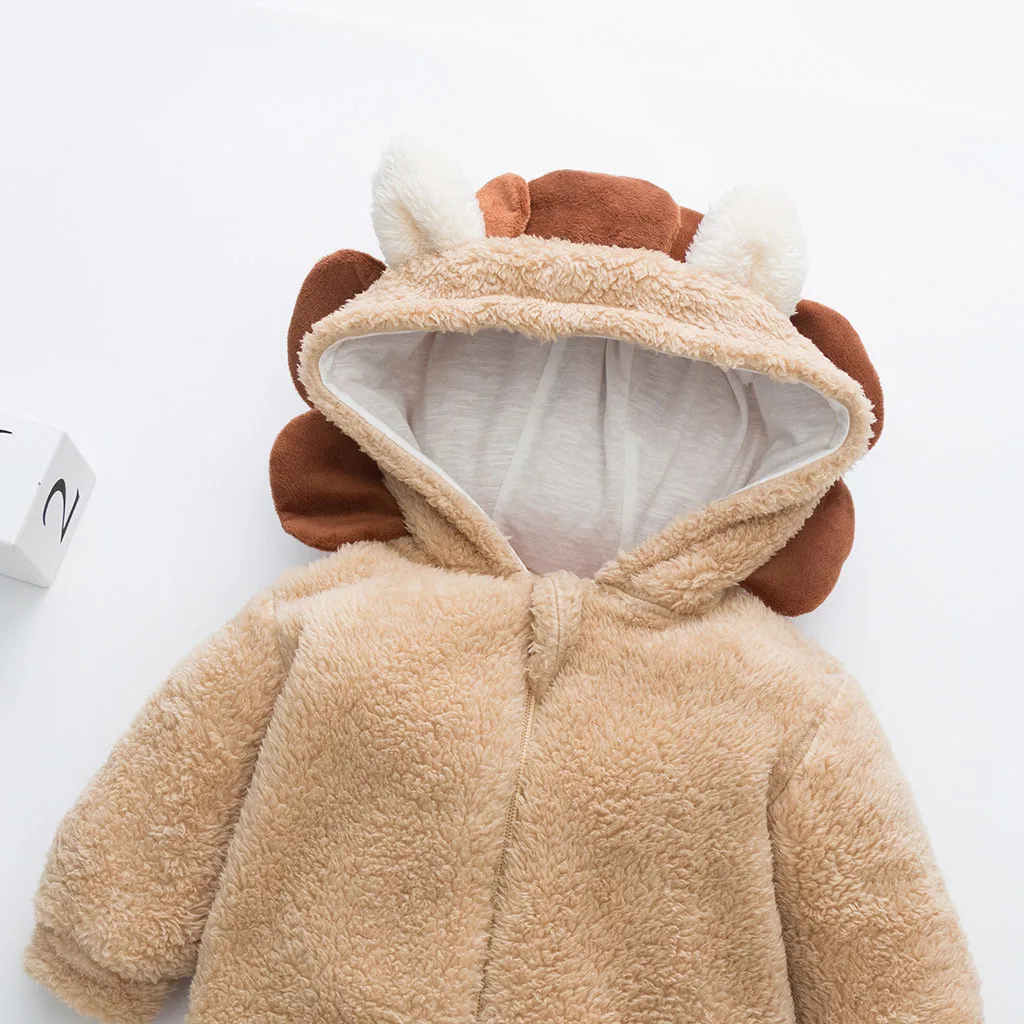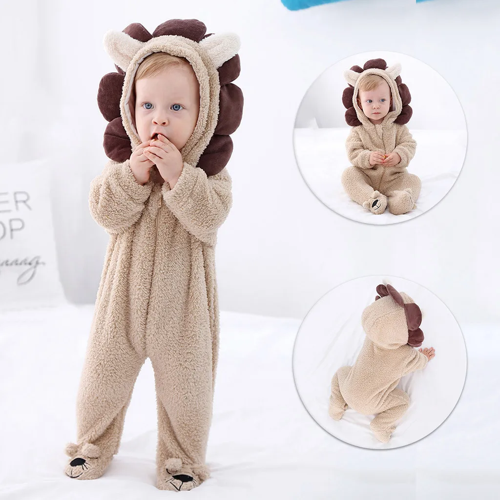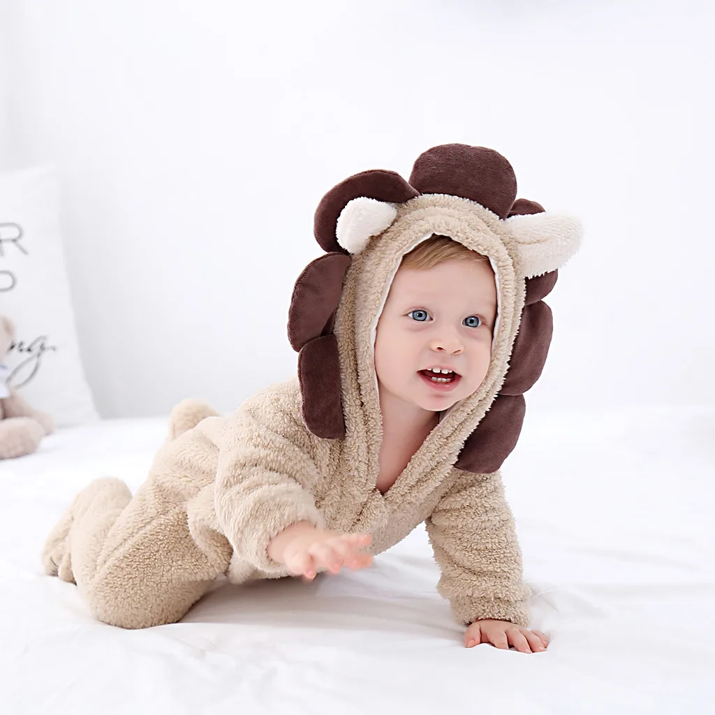 Одежда для новорожденных; Для маленьких мальчиков и девочек зимняя одежда 3D для детей, с рисунком в виде льва, с длинным рукавом, с капюшоном, теплая флисовая Песочник Комбинезон хлопковый наряды # g4