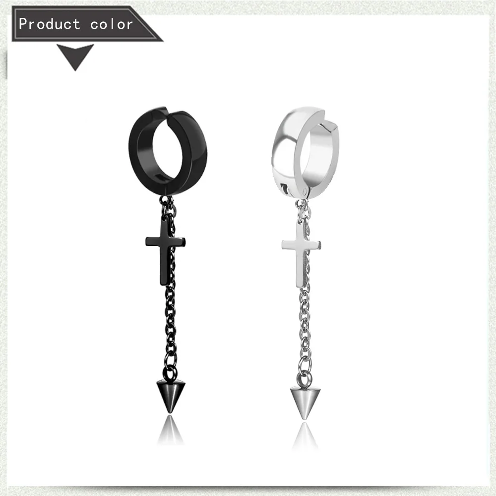 1 пара 2 шт. черная титановая сталь, без дырочек для ушей, мужские и женские серьги с кисточками Модный Крест серьги-клипсы для мальчиков и девочек, модное ювелирное изделие