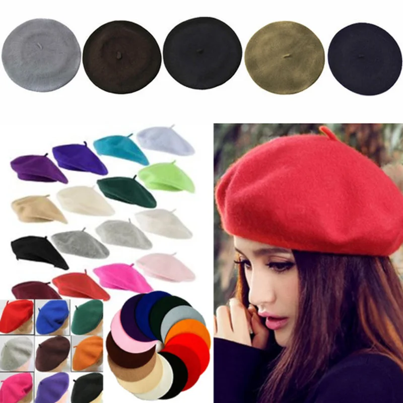 Шапка-берет Женская, зимняя, шерстяная, однотонная, винтажная
