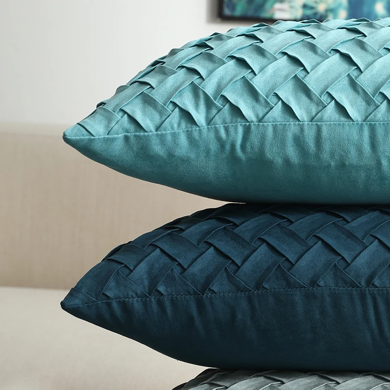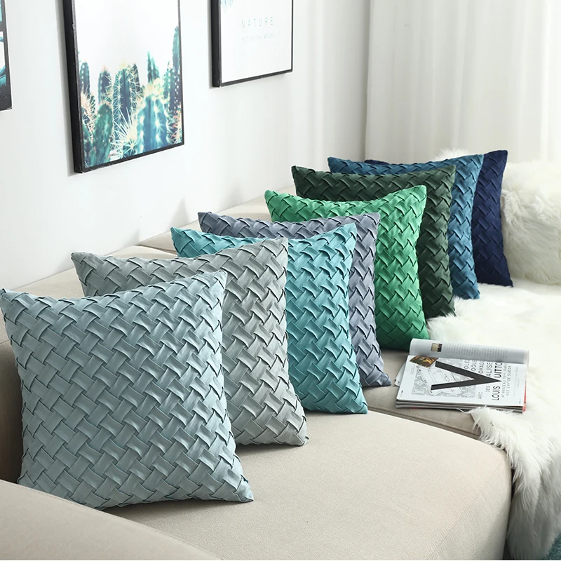 Синяя наволочка из мягкой искусственной замши, домашний декоративный темно-синий чехол для подушки с тканым рисунком, Зеленый 45x45 см30x50 см