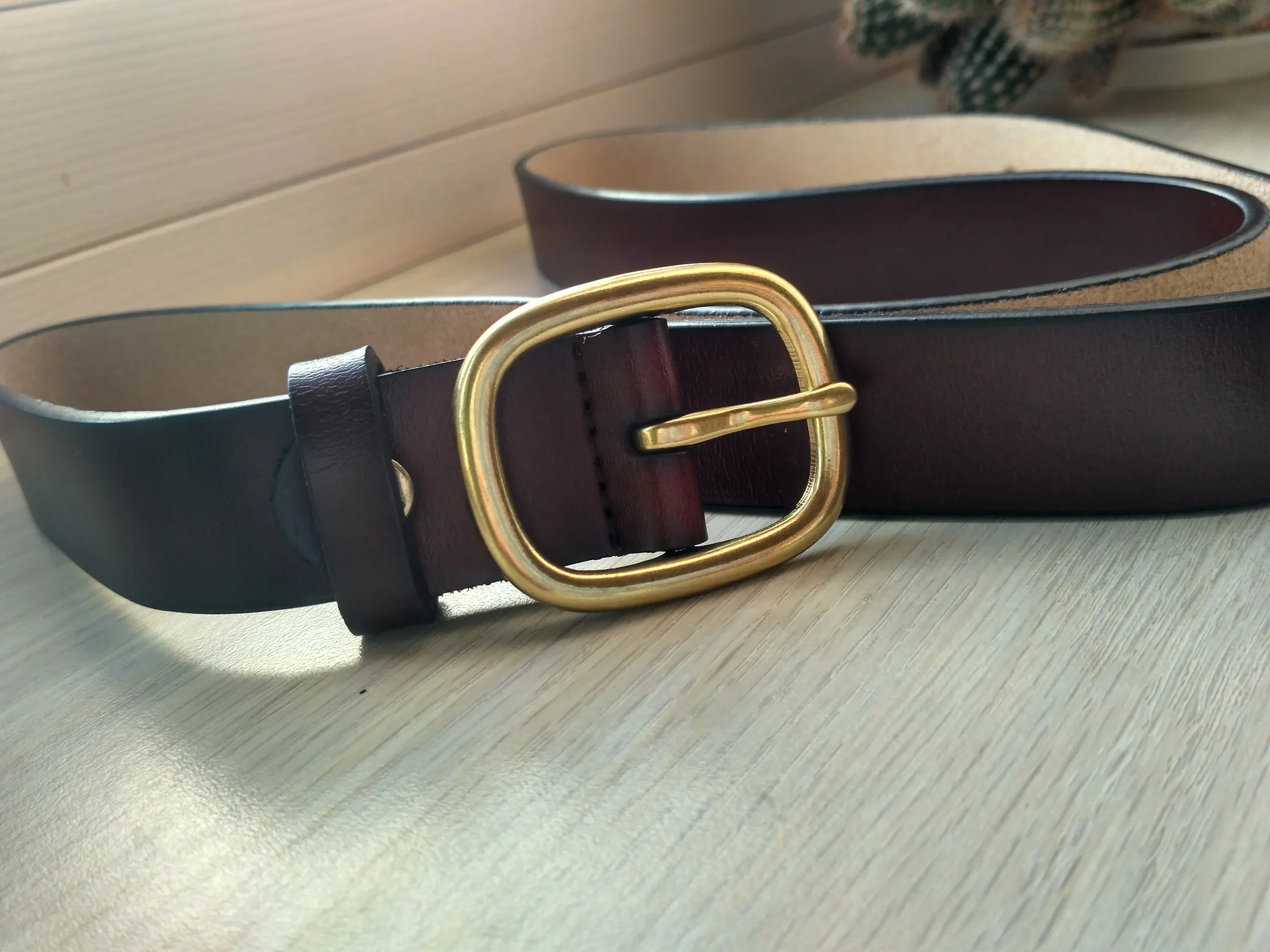 ремень хороший, кожаный, и пахнет кожей. выглядит очень хорошо. немного слишком мягкий, что наводит на мысль, что может быстро износиться, но посмотрим. тем более за эту цены... Пряжка очень красивая. на обхват талии 60-70 будет отлично.