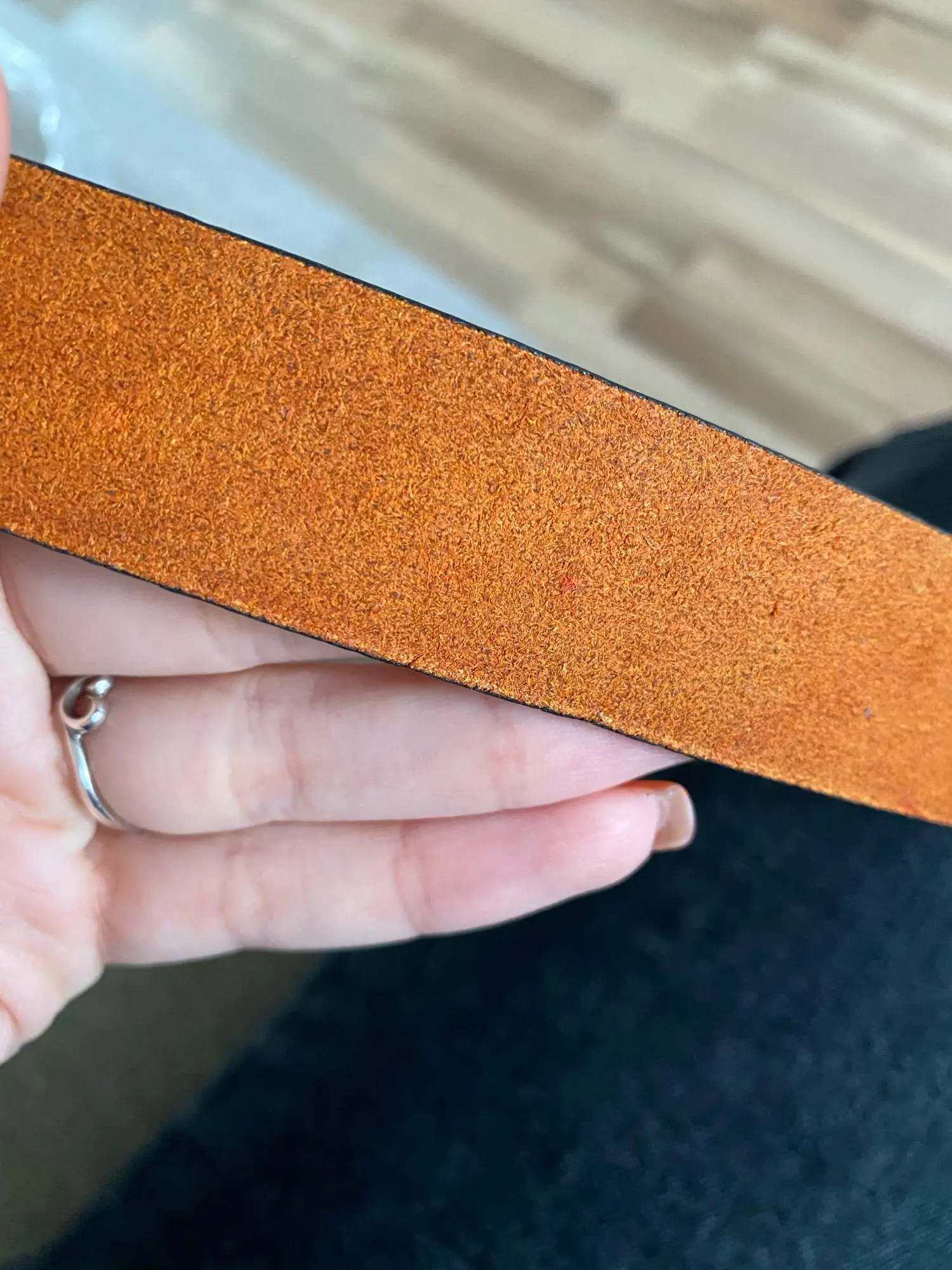 Ремень отличный. Выглядит респектабельно, изготовлен из качественного материала. Очень порадовала изнаночная сторона, оня мягкая и бархатистая (у других приобретенных ремней на Али из схожего ценового сегмента обратная сторона шершавая, как наждачка), этот ремень точно не будет травмировать и царапать одежду. 5 звезд, я довольна.))