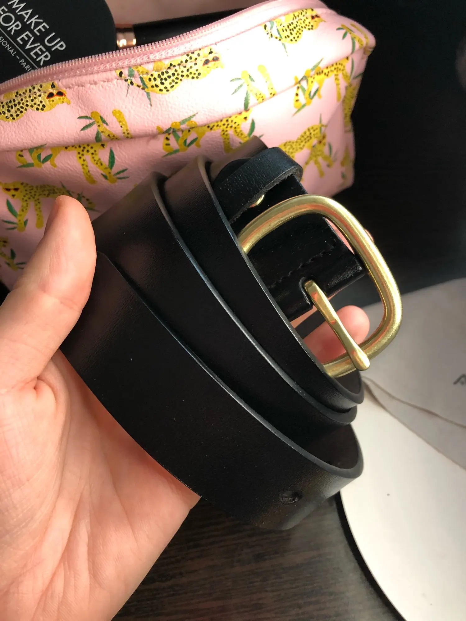Чудесный ремень! Что хотела, то и получила ❤️ моя талия 67см, но на фото джинсы чуть ниже талии. Ремень 90см сидит круто, очень довольна! Только шёл долго до Москвы..