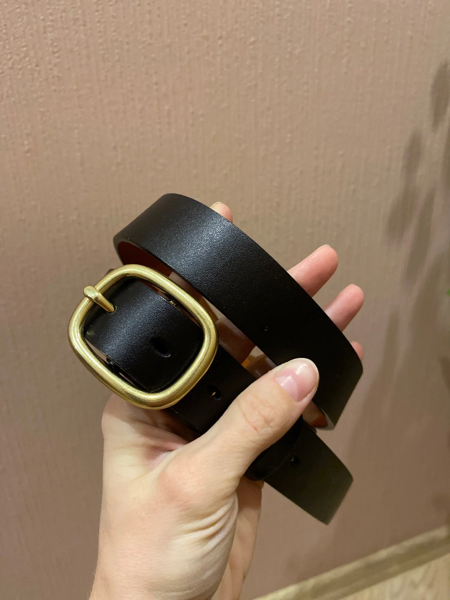 Ремень женский из натуральной кожи с золотистой пряжкой