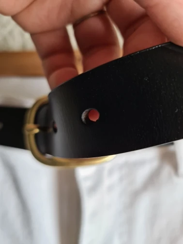 Ремень понравился! При распаковке сильно пах краской, но одежду не пачкает. Края аккуратные. Пока сложно определить , кожа это или нет.