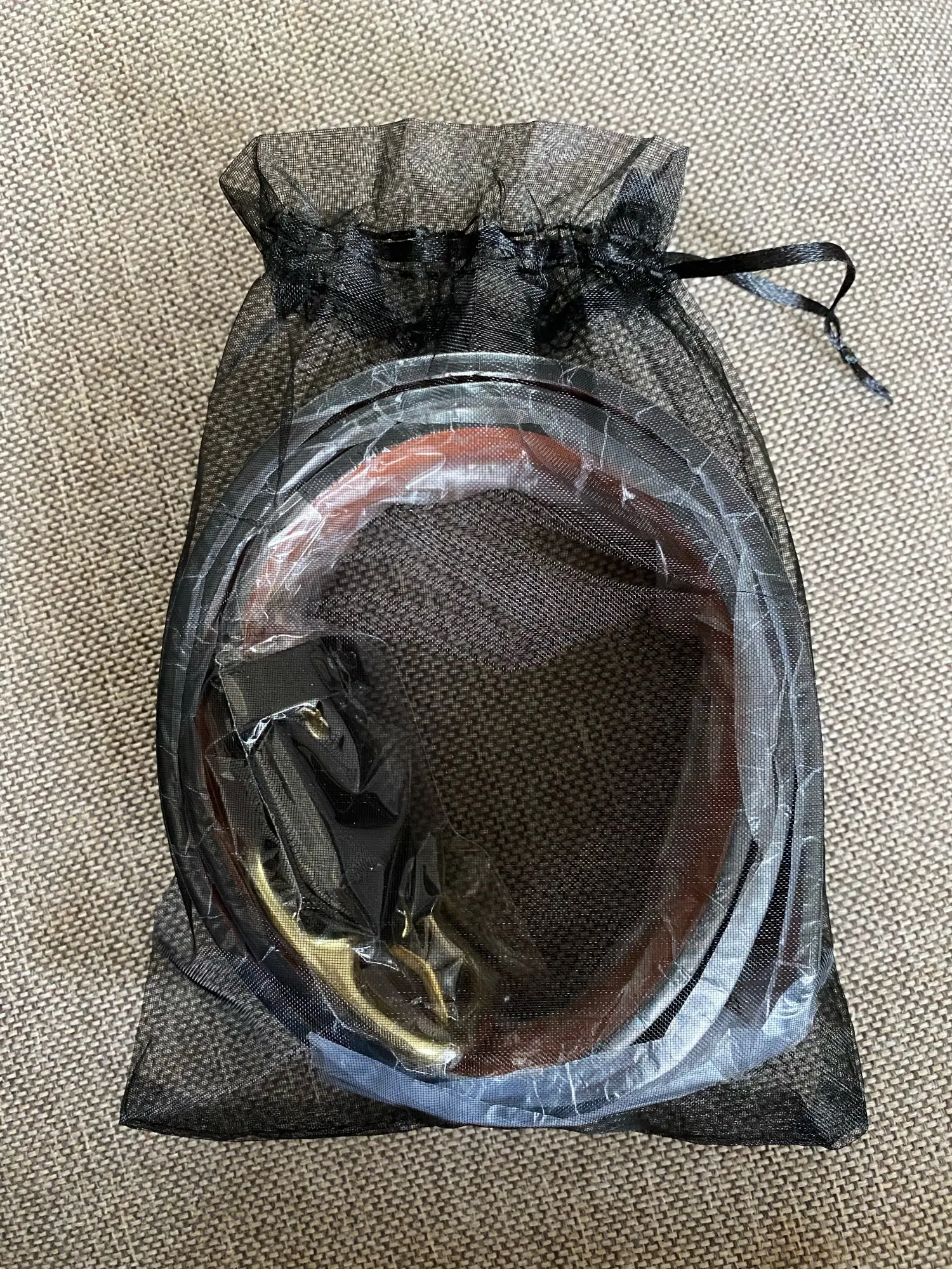 Пришло очень быстро, в Москву за 2 недели. Ремень находился помимо обертки в мешочке. Сам ремень не воняет. Аккуратно сделан.