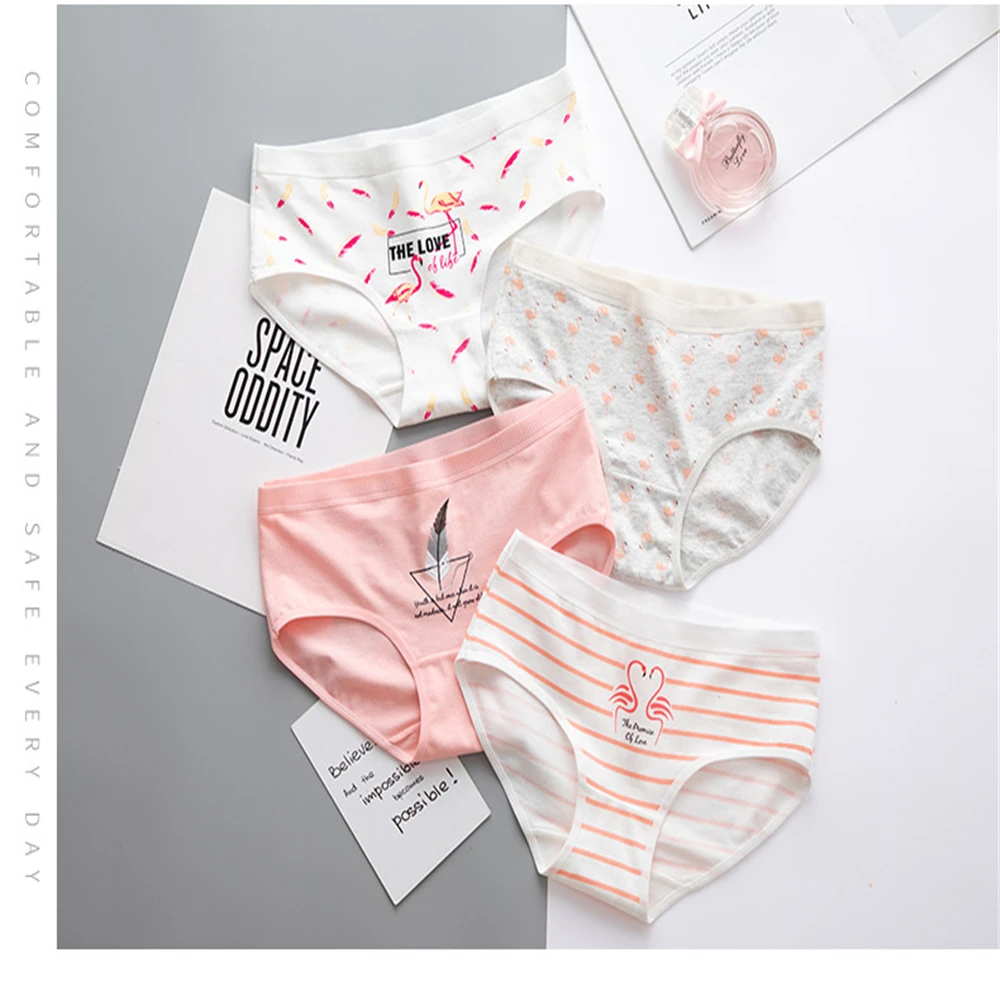Хлопковое антибактериальное тонкое дышащее нижнее белье со средней талией и большими Фламинго TC5030