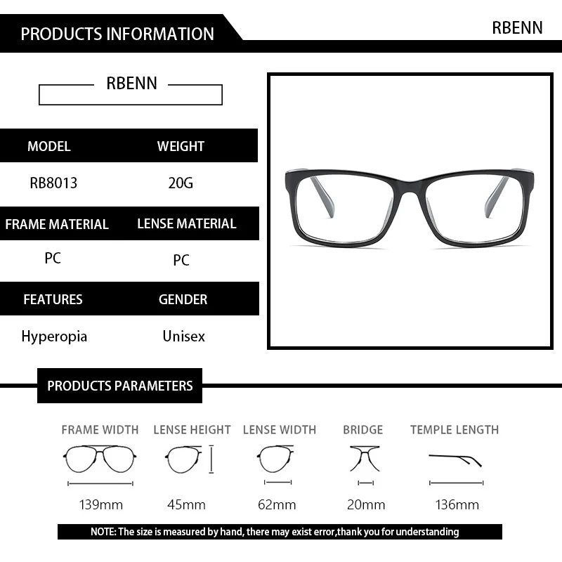 Rbenn модные очки для чтения для мужчин и женщин большой кадр дальнозоркостью Glassses с диоптрий 0,75 1,25 1,75 2,25 2,75 3,25 3,75 4,5 5,0 6,0