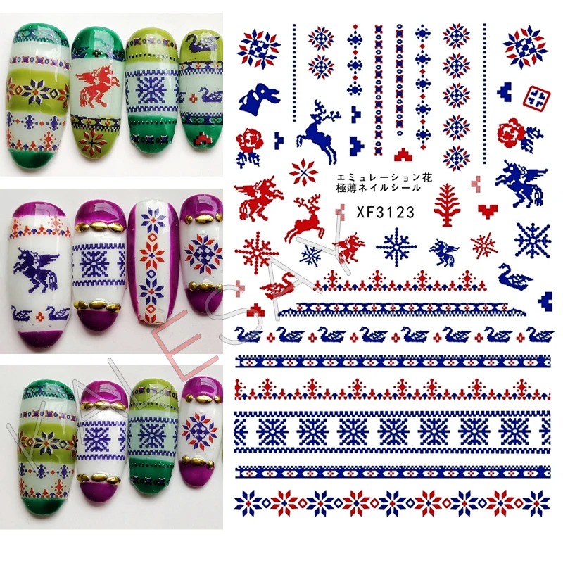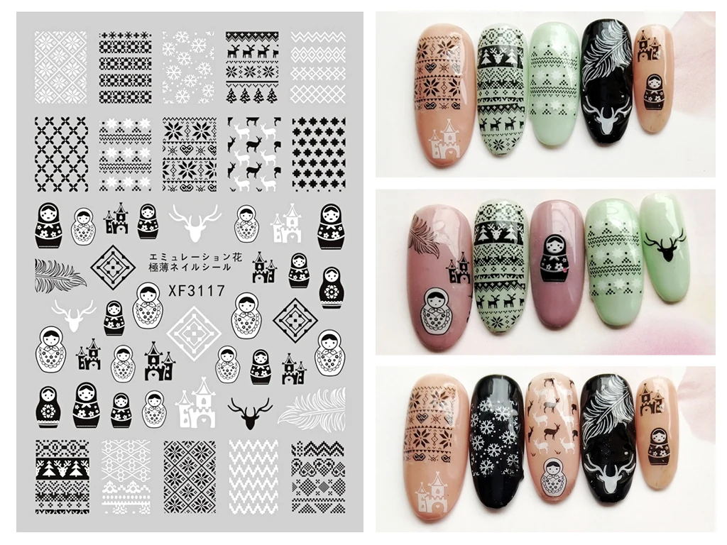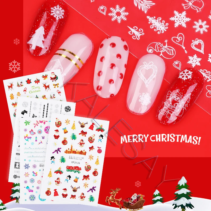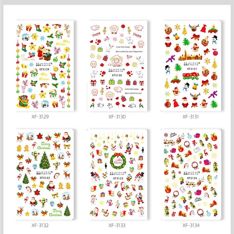 Рождественская елка, наклейка для ногтей, художественное украшение, конфеты, подарки, Снежная наклейка для ногтей, наклейка для маникюра, дизайн ногтей, Санта-Клаус