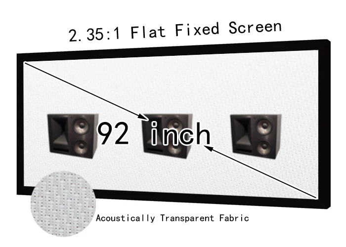 Широкоформатный 92 дюймовый диагональный Звук Прозрачный экран, 2,35 на 1 фиксированной рамке плоских поверхностных экранов