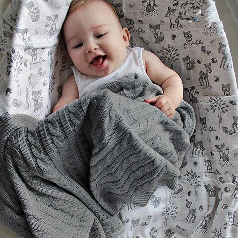Вязаное Пеленальное Одеяло для новорожденных, пеленка на коляску, д...