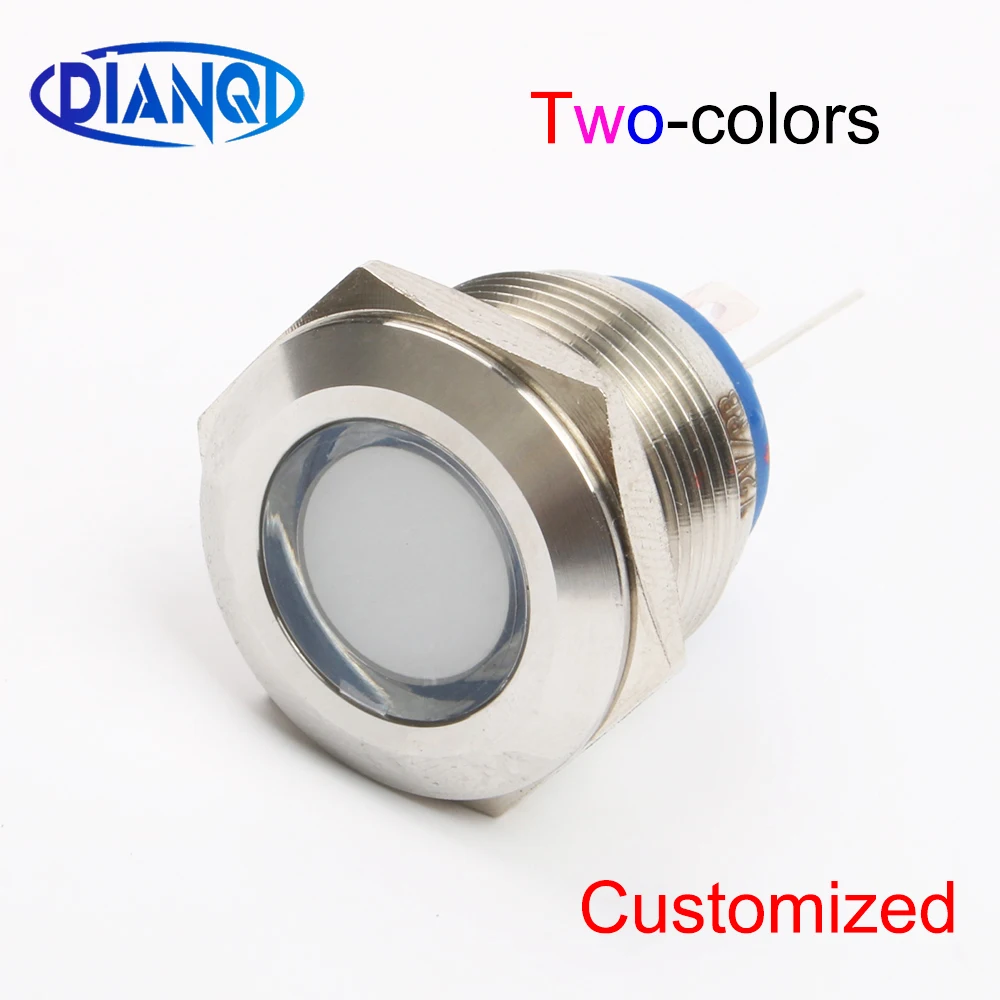 19 мм двухцветный светодиодный общий катод общий анод металлическая сигнальная лампочка 19 мм, плоские круглые сигнальные лампы 6 в 12 В 24 В 220 В контактный разъем