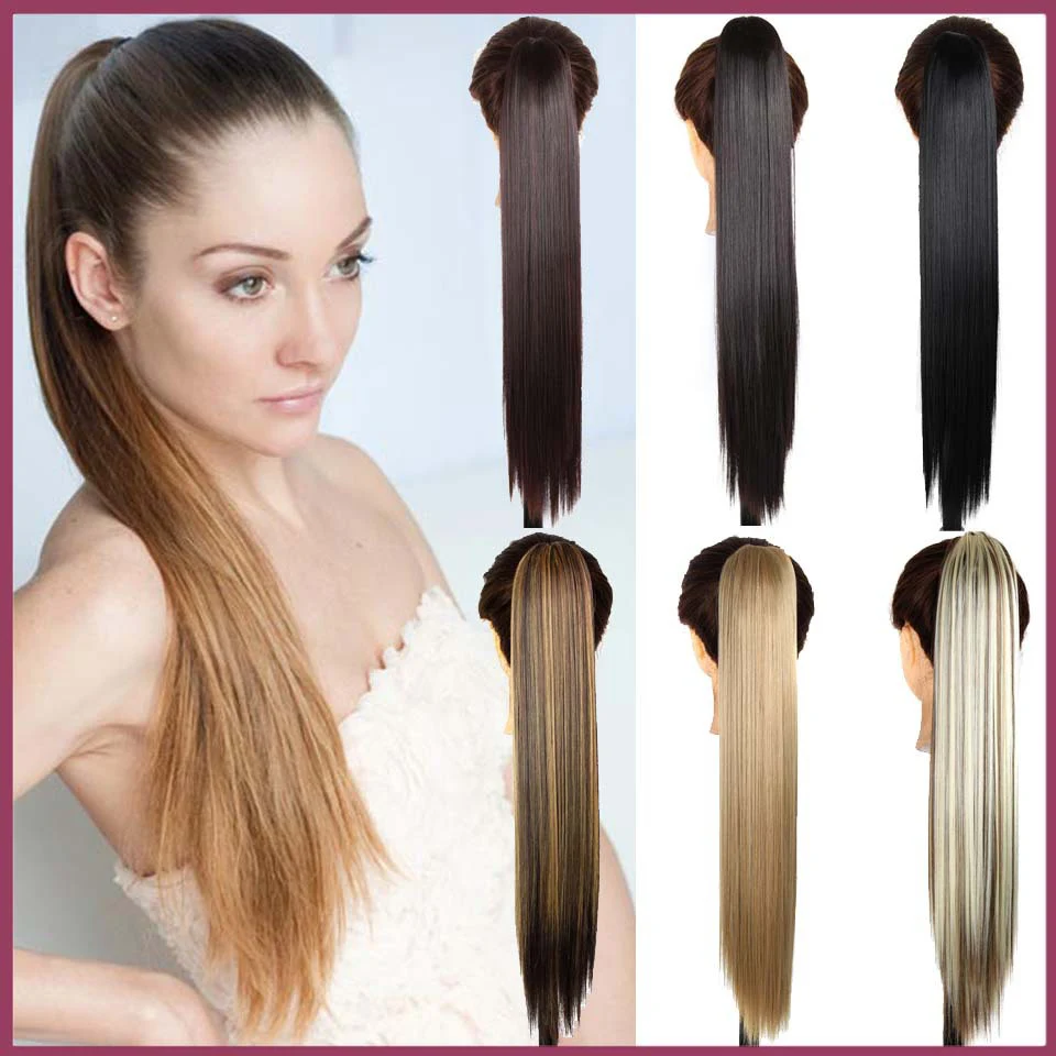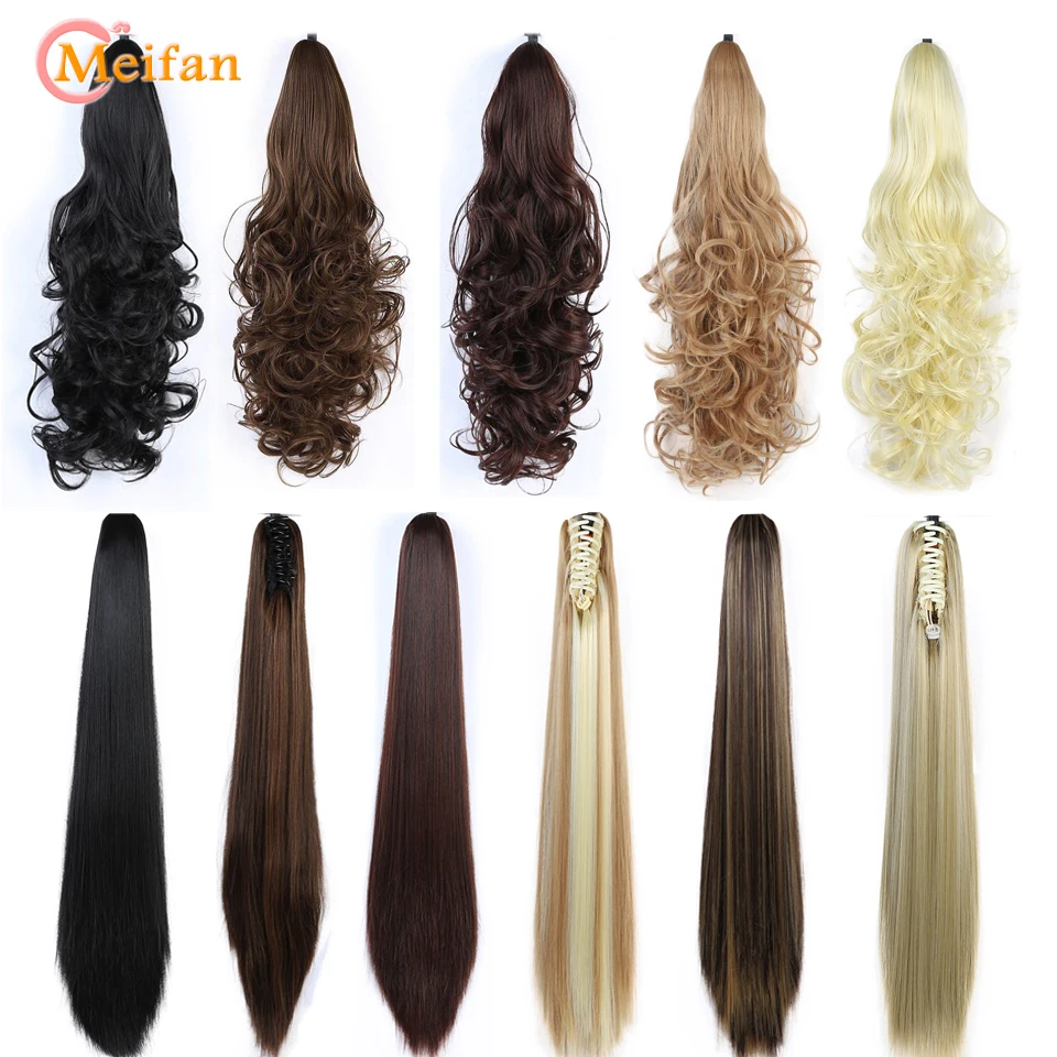 Парики MEIFAN с длинным прямым конским хвостом, шпильки конский хвост синтетические термостойкие накладные искусственные волосы на клипсе