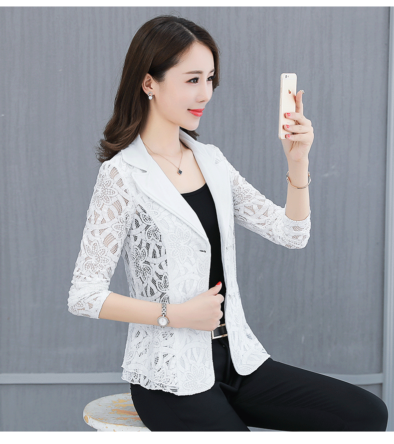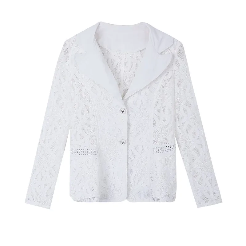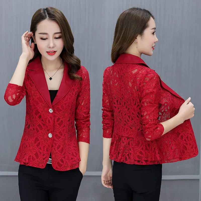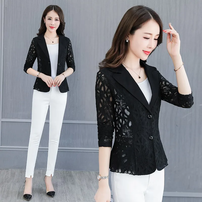 Пиджак женский кружевной, модный тонкий пиджак, офисный короткий Блейзер, большие размеры 4XL, весна-лето