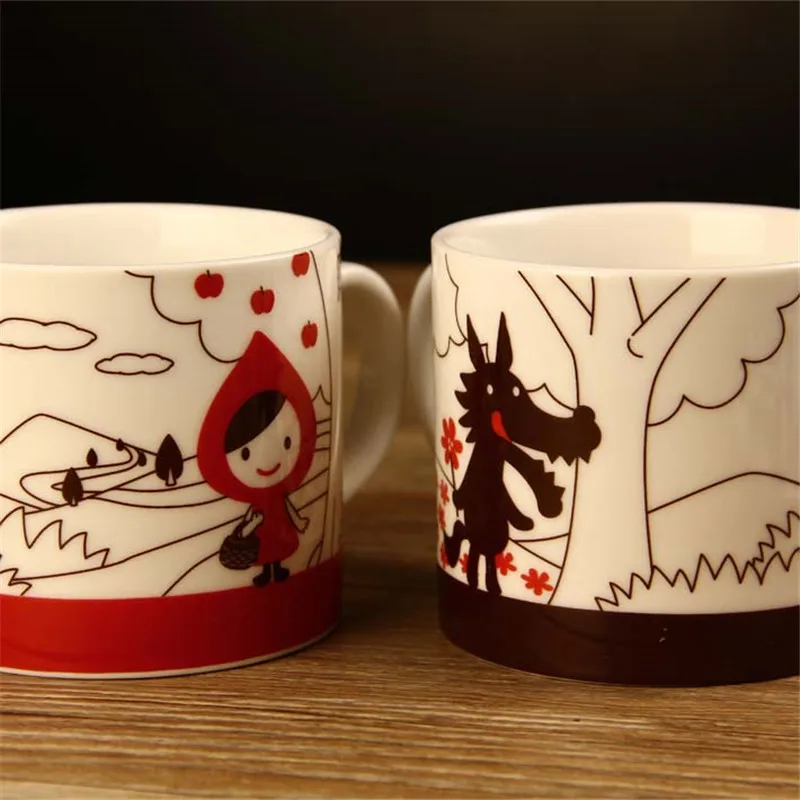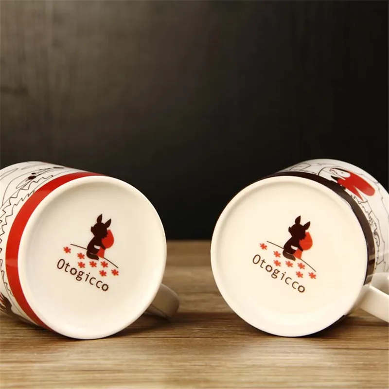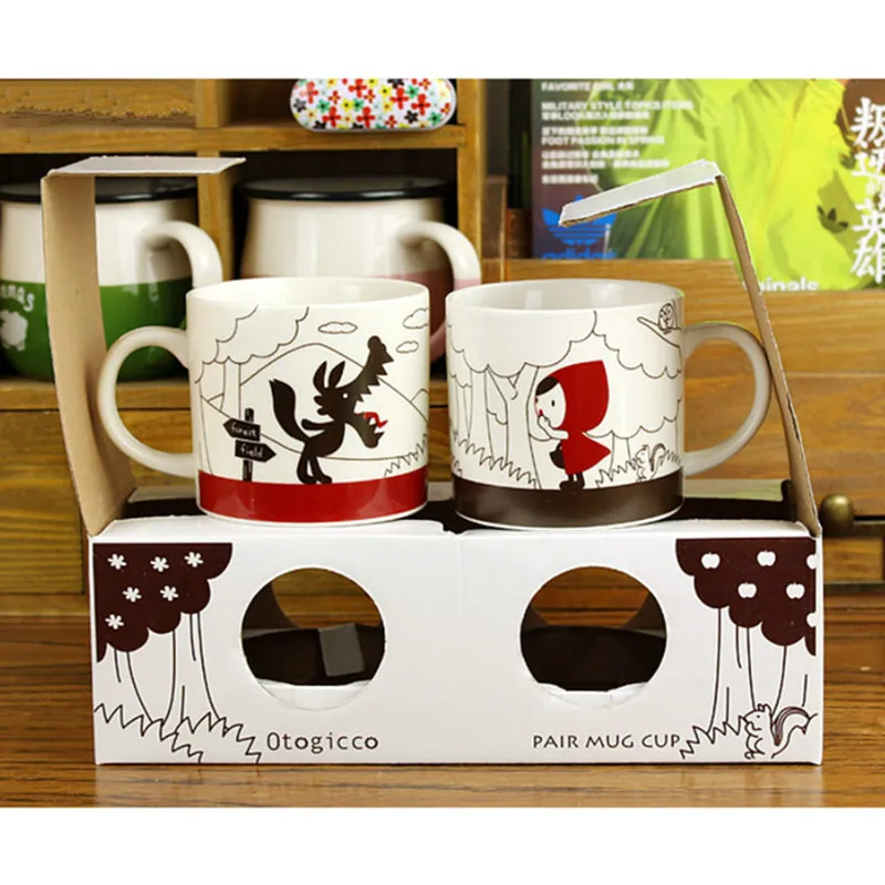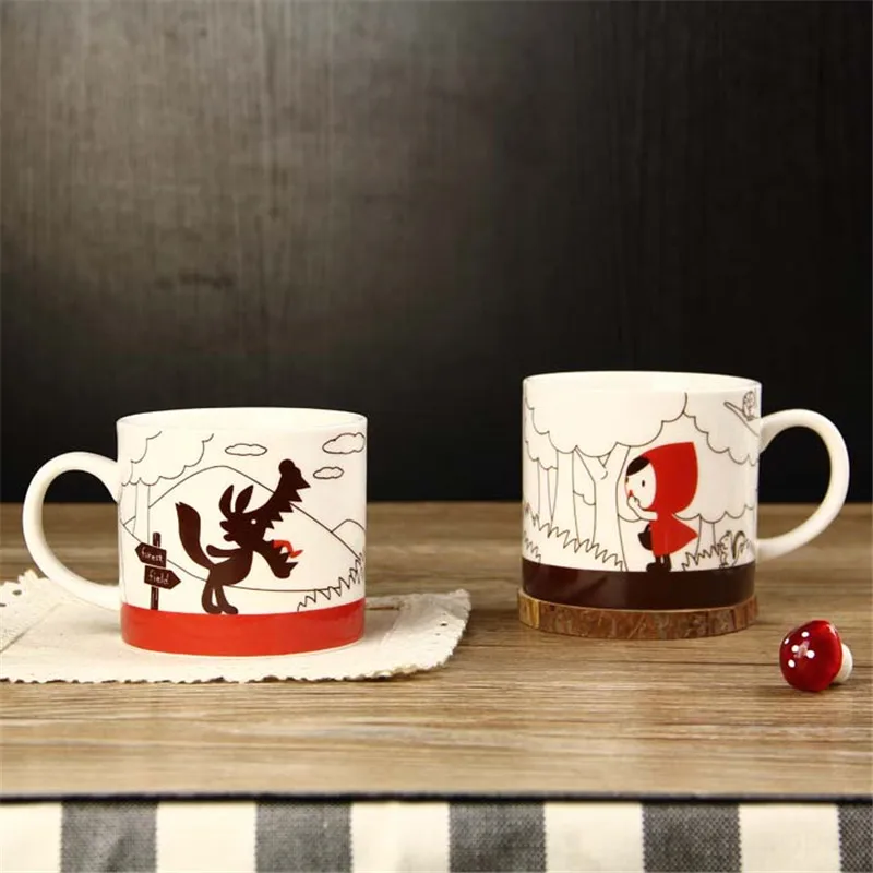 Кофейные чашки 2 в 1 с мультяшным рисунком, Красная Шапочка для верховой езды, милый подарок для влюбленных, керамическая кружка для завтрака, 2 кружки, посуда для напитков