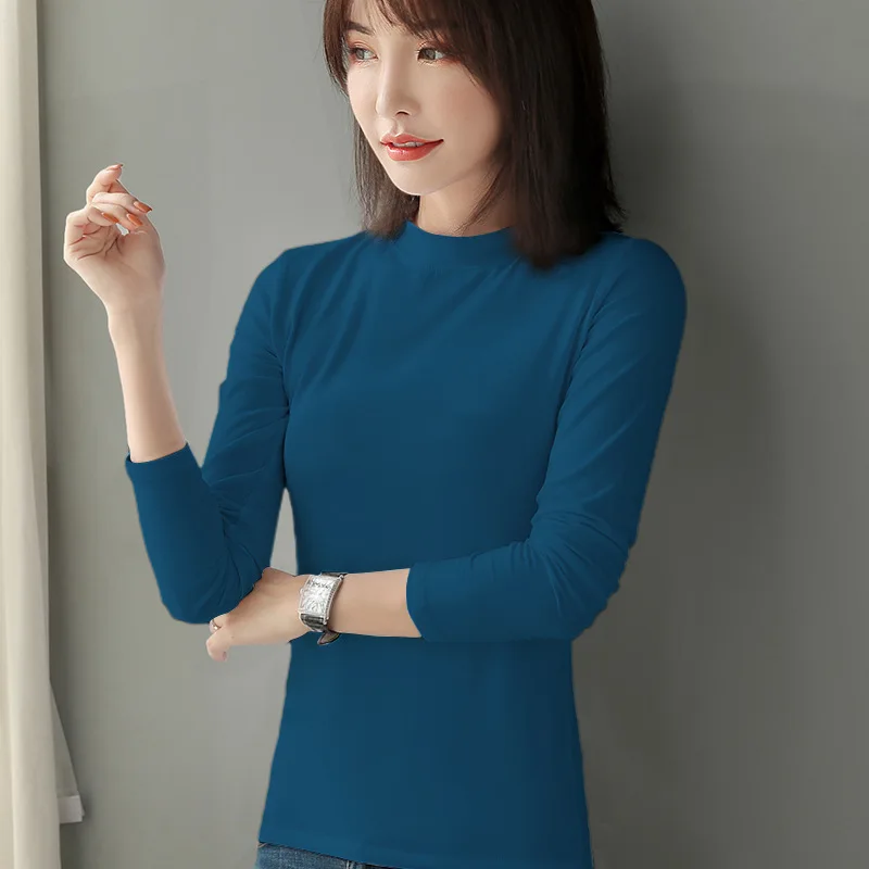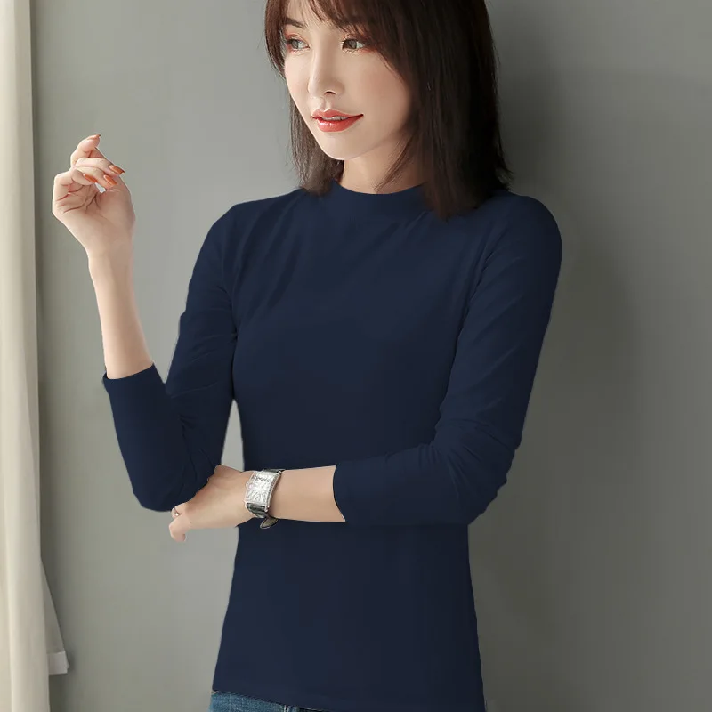 Женская мягкая хлопковая Футболка с V-образным вырезом, однотонные женские футболки с длинным рукавом, зимняя и осенняя Женская одежда, Универсальные женские футболки