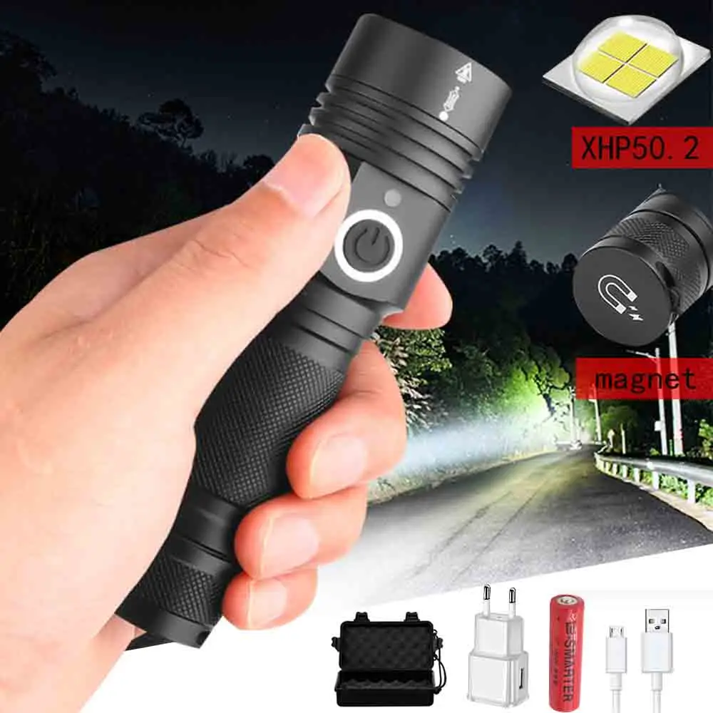 Суперяркий Светодиодный фонарик, 7000 лм, xhp50.2, USB, перезаряжаемый водонепроницаемый фонарик, мощный зум, фонарик с магнитным хвостом