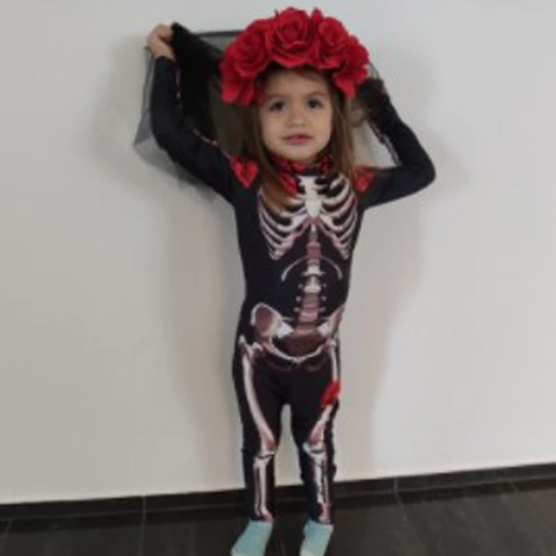 2022 Пурим Розовый Череп взрослые дети ужас костюм Хэллоуин платье косплей комбинезон Карнавальная Вечеринка комбинезон для девочек день мертвецов