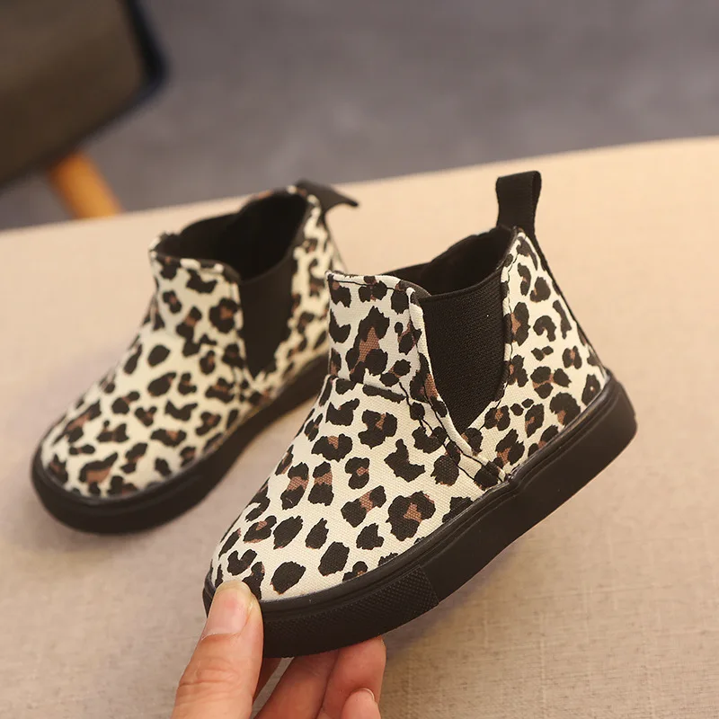Леопардовые детские зимние ботинки без застежки; Ботинки для маленьких девочек; Детская зимняя обувь; Ботинки для мальчиков; Высокие ботинки; C10013