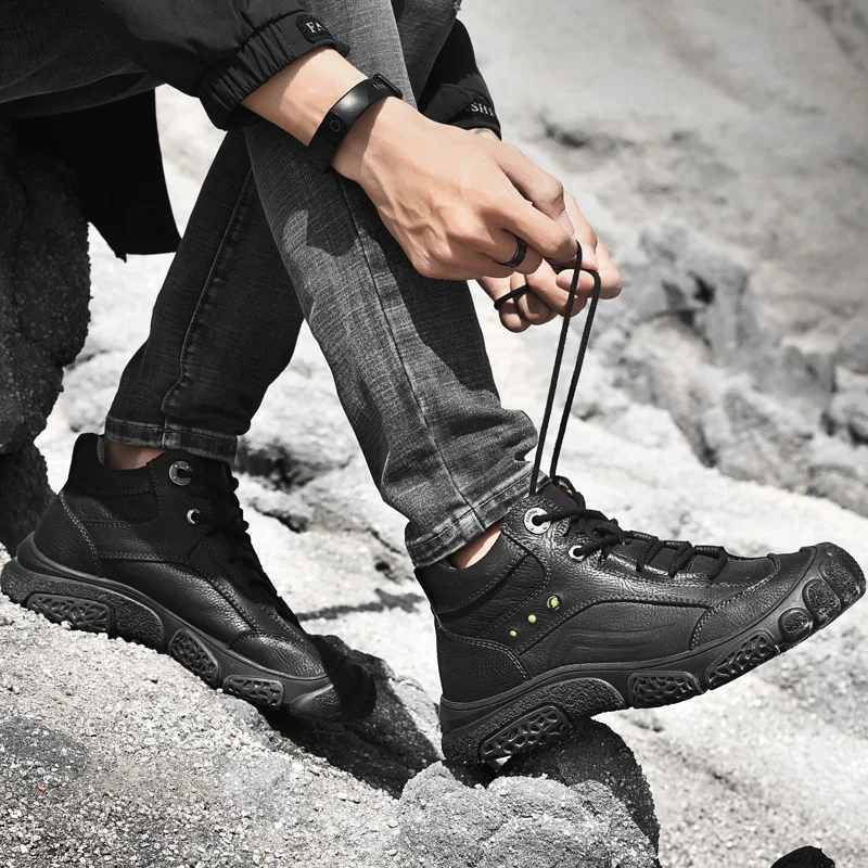 Новое поступление; Мужские ботинки на шнуровке; Зимние ботинки из натуральной кожи; Мужская износостойкая Мужская обувь ручной работы; Сезон осень-зима; Большие размеры