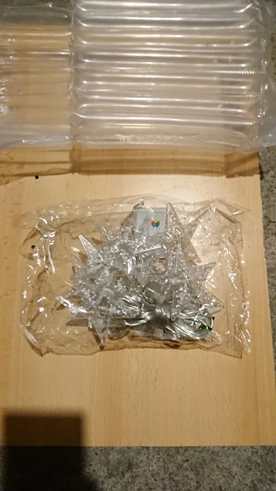 Посылка пришла быстро, упакована хорошо, но одна звёздочка была раздавлена. Продавец частично вернул деньги.