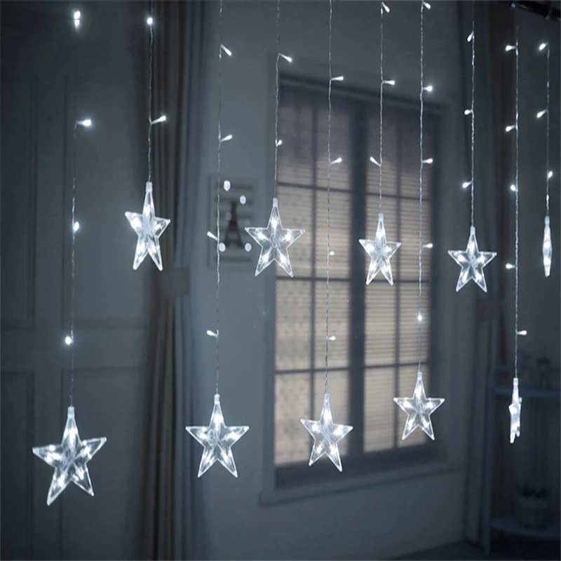 СВЕТОДИОДНАЯ Гирлянда со звездами, 220 В, вилка европейского стандарта, 2,5 м, Рождественская сказочная гирлянда, уличная Гирлянда-занавеска для вечерние ринки, свадьбы, праздника, Нового года, Декор