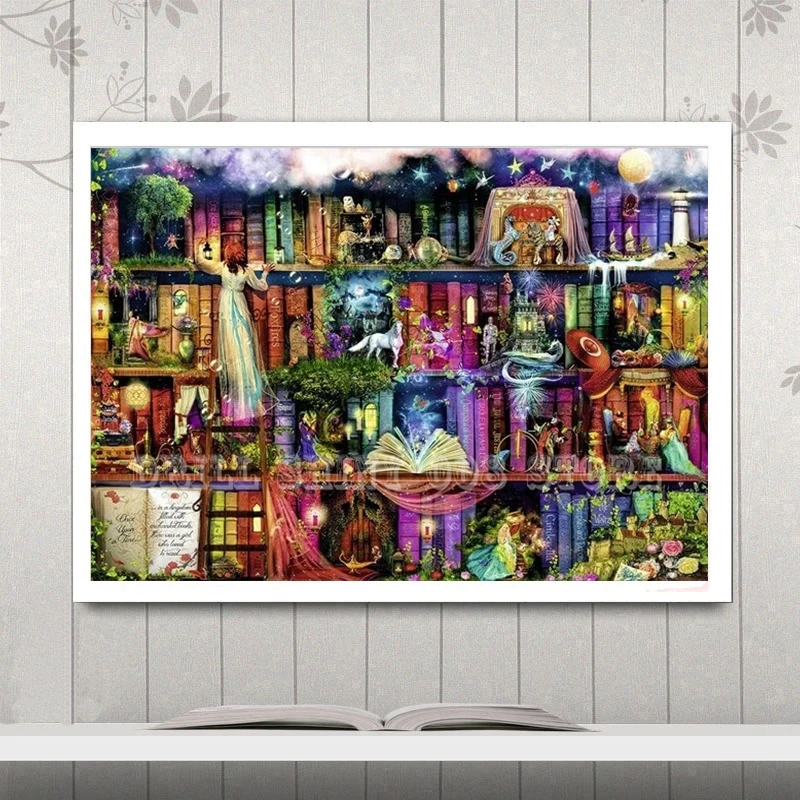 Алмазная 5D картина сделай сам, Сказочная библиотека, полная вышивка, вышивка крестиком, мозаика, Набор для творчества, украшение для дома, подарок