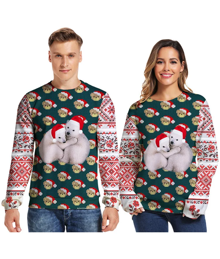 Свитер унисекс, с 3D-принтом медведя, с круглым вырезом