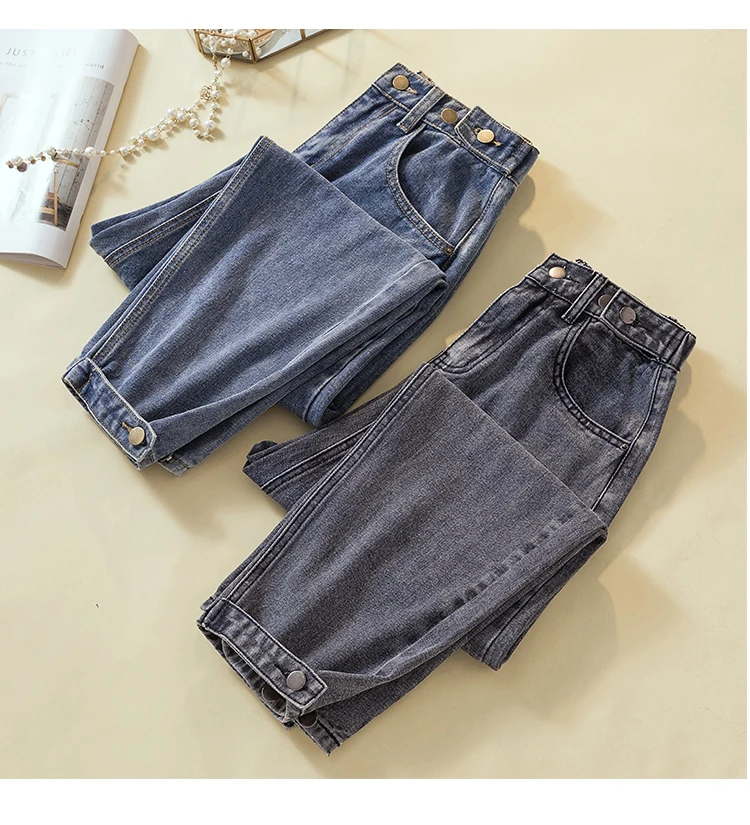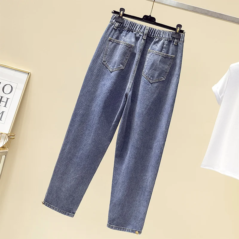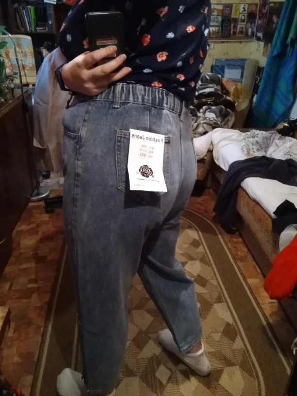Джинсы женские осенние умягченные до щиколотки, с завышенной талией, 100 кг