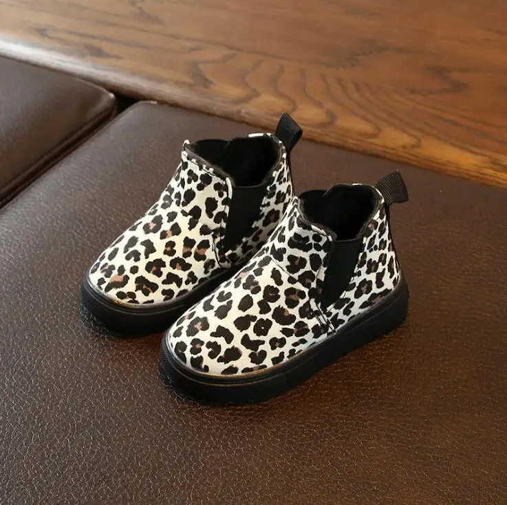 Детские ботинки из леопардовые снежные сапоги хлопка для мальчиков и девочек, зимние ботинки со шнуровкой, Толстая теплая Нескользящая хлопковая обувь