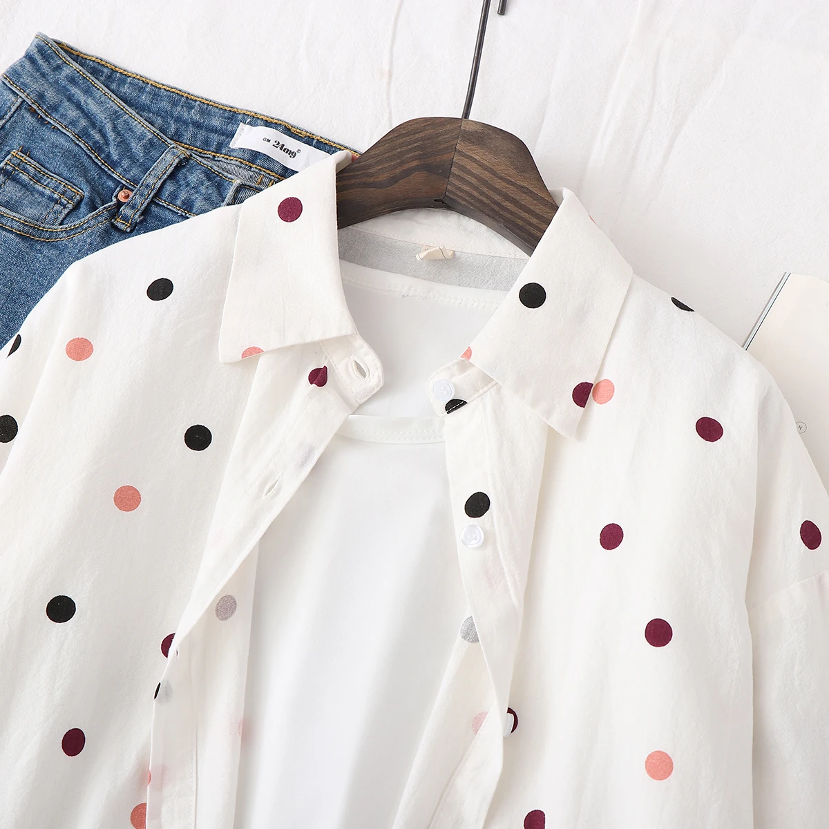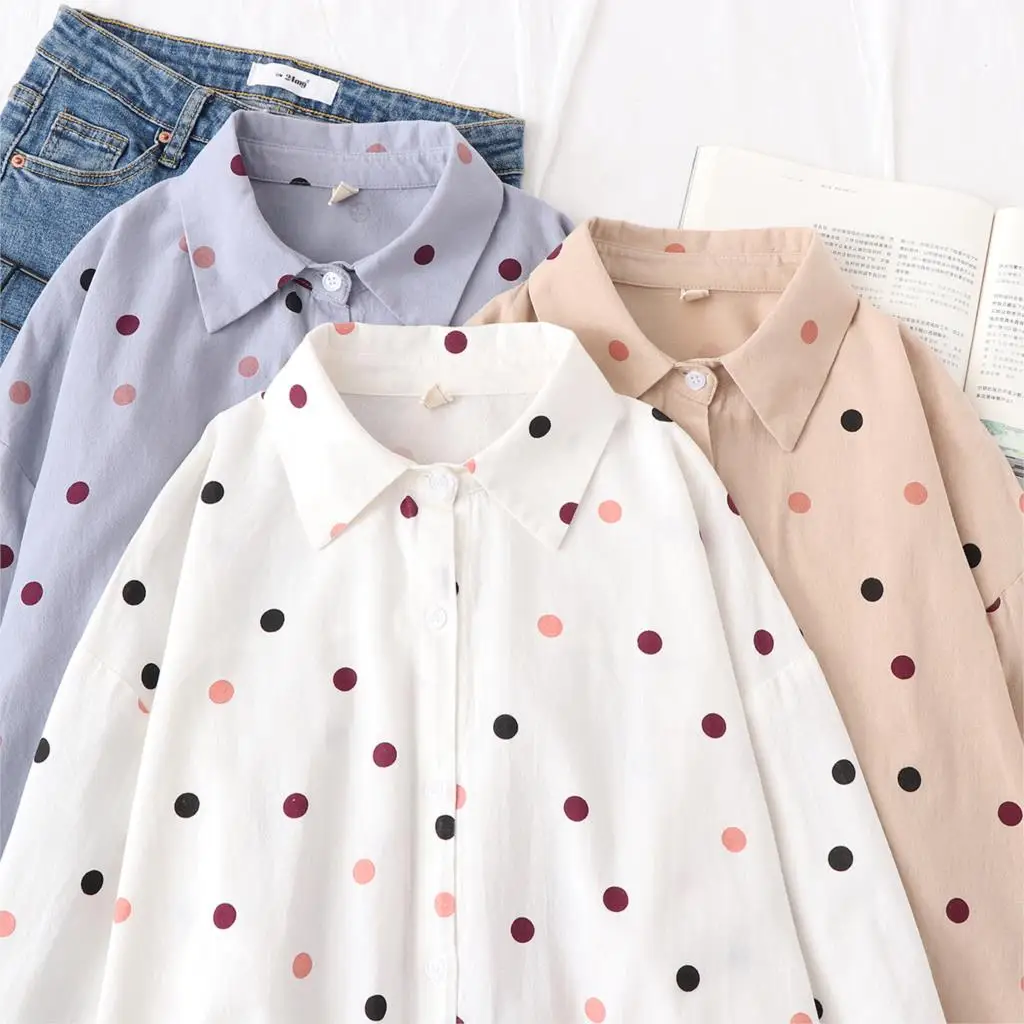 Женская блузка в горошек, хлопковая Повседневная Свободная блузка с длинным рукавом, для весны, 2021