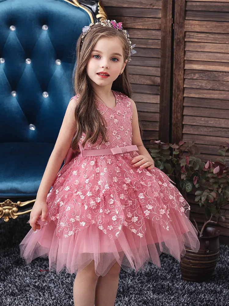 Детское платье с цветочным принтом It's YiiYa, короткое праздничное платье с V-образным вырезом, аппликацией и бантом на свадьбу, 190
