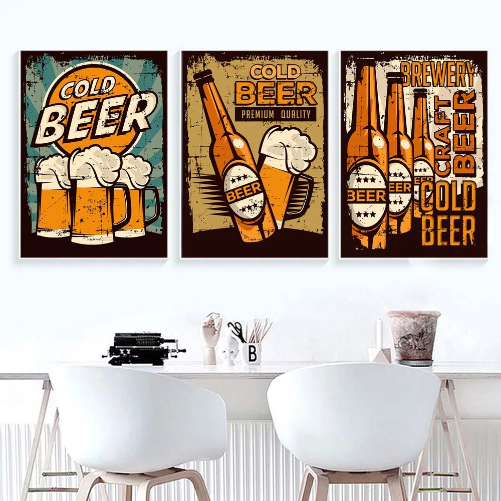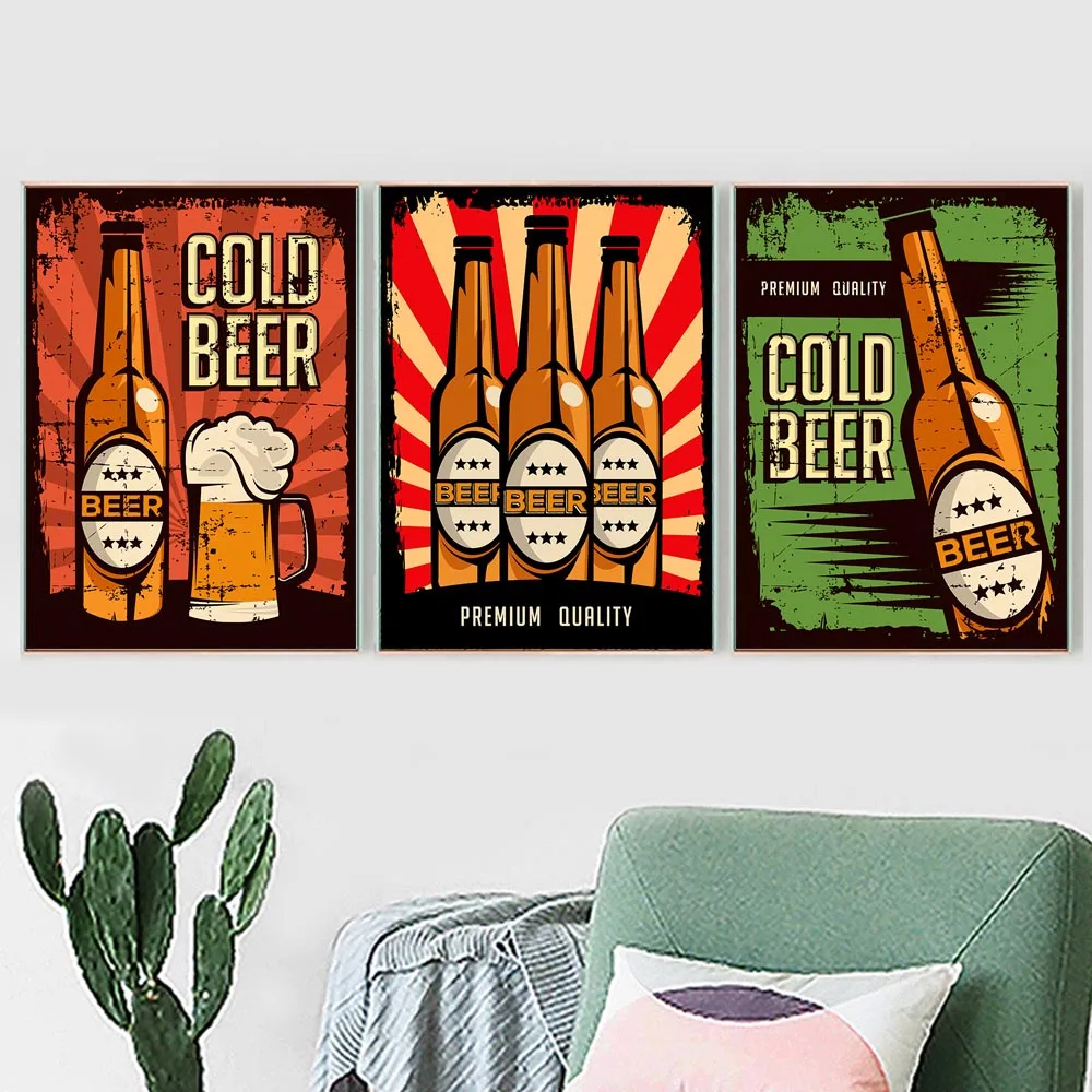 Картина на холсте Холодное пиво, настенные постеры и принты в скандинавском стиле для гостиной, бара, ресторана, Декор