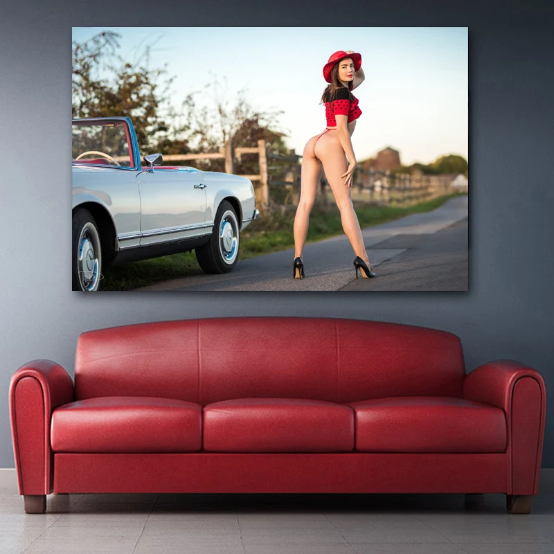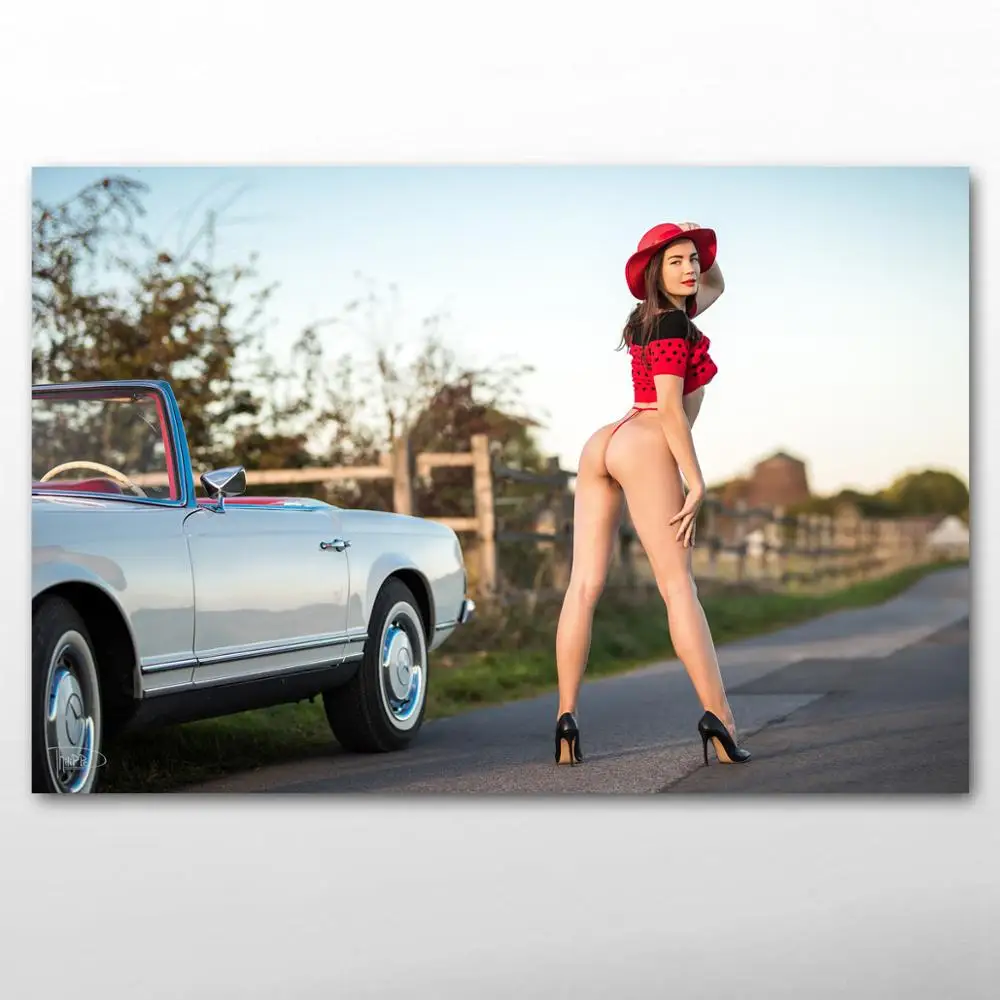 Настенные художественные плакаты, красивая модель с длинными ногами, девушка, трансформируемая машина, фото, печатные картины на холсте, украшения для гостиной