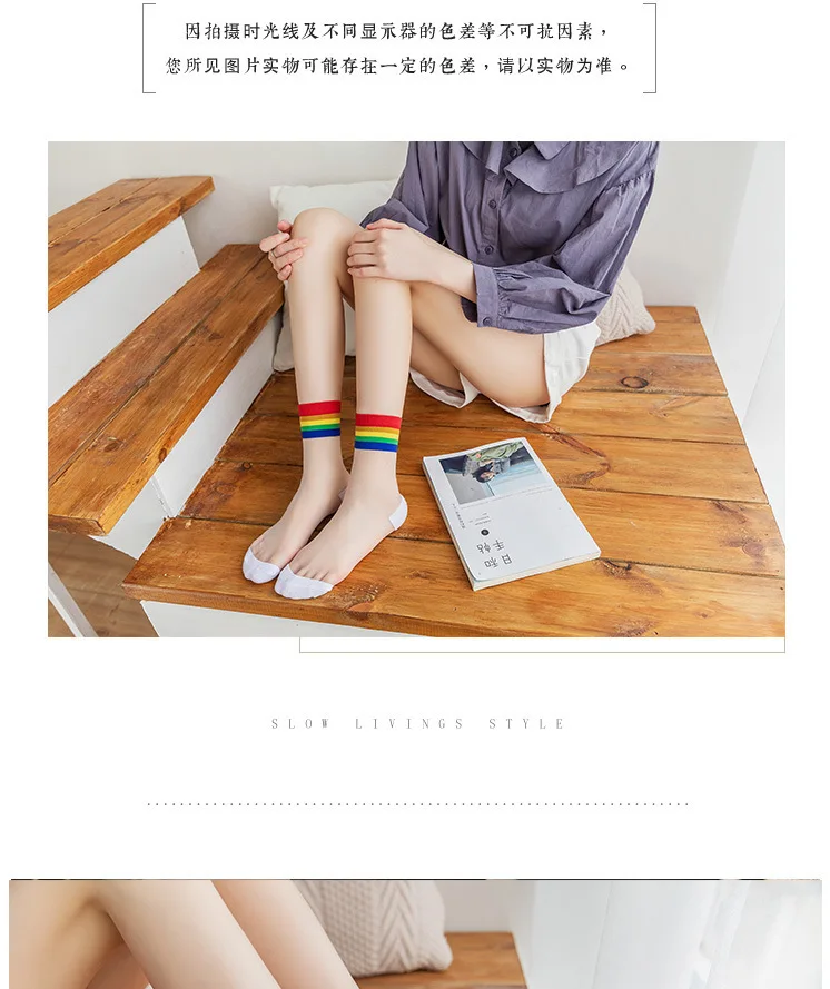 Носки женские, с радужными полосками, теплые, в Корейском стиле