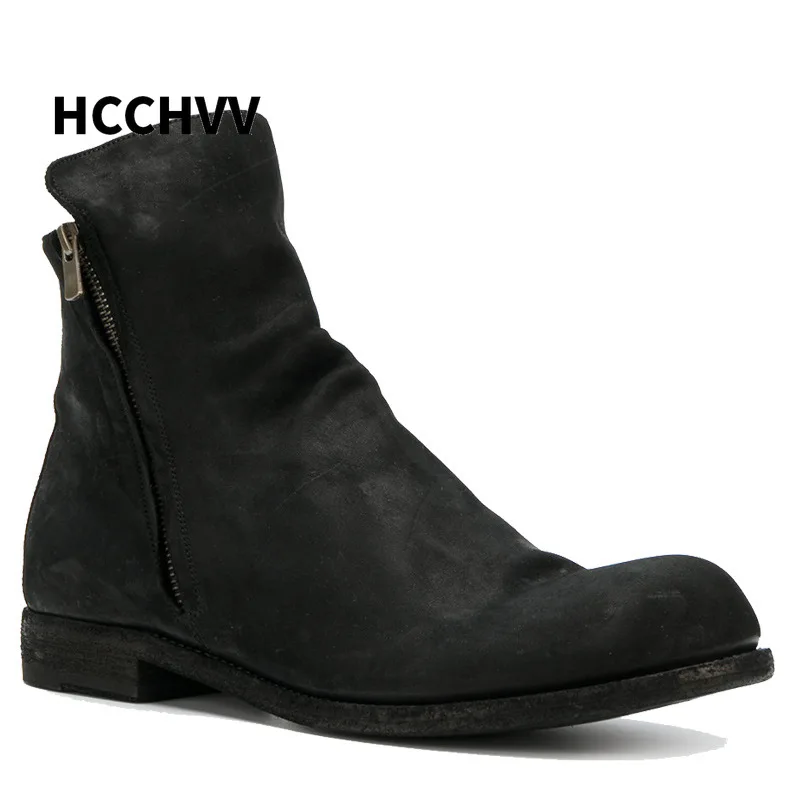 Мужские кожаные ботинки челси, Черные ботильоны без застежки на молнии, теплые ботинки в байкерском стиле, 2019