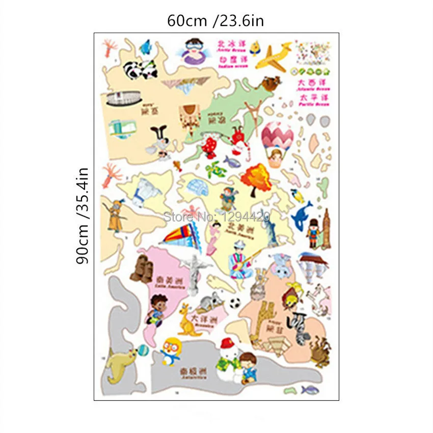 Детская дорожная видеть мир мультфильм животных карта 3d виниловая наклейка на стену Детская комната украшения детские головоломки обои 90*60 см