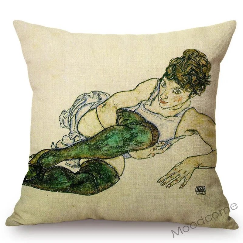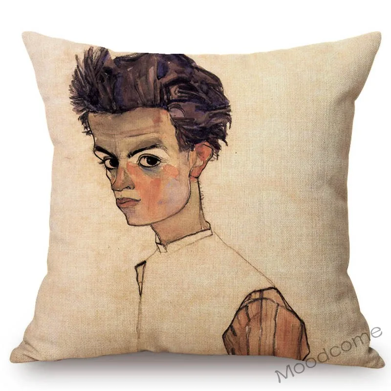 Австрия абстрактный Экспресс искусство Эгон Schiele Обнаженная девушка сексуальное искусство Автопортрет масляная живопись Подушка Чехол диван наволочка