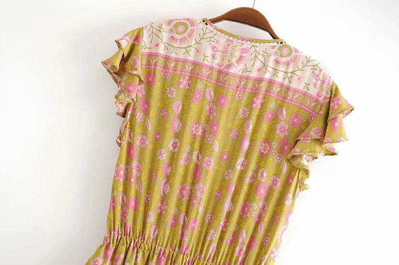 Женское богемное Платье макси с коротким рукавом и V-образным вырезом