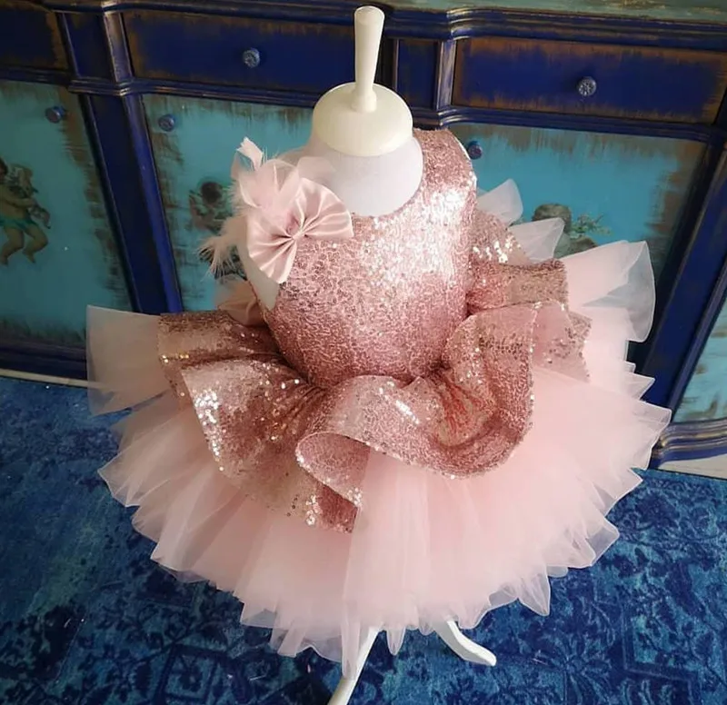 Розовое Тюлевое платье для дня рождения с золотыми блестками для ма...