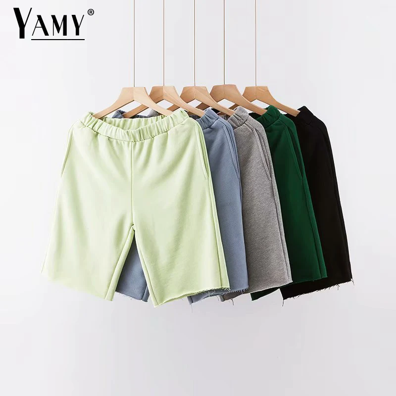 Шорты женские, хлопковые, с карманом, с высокой талией