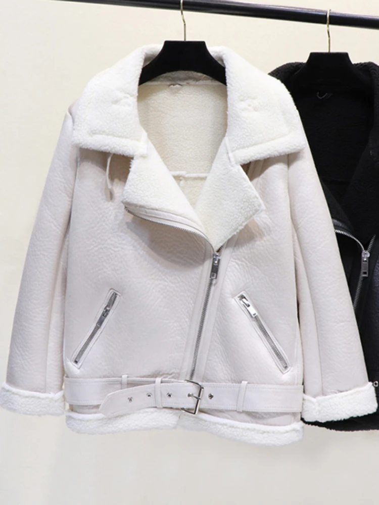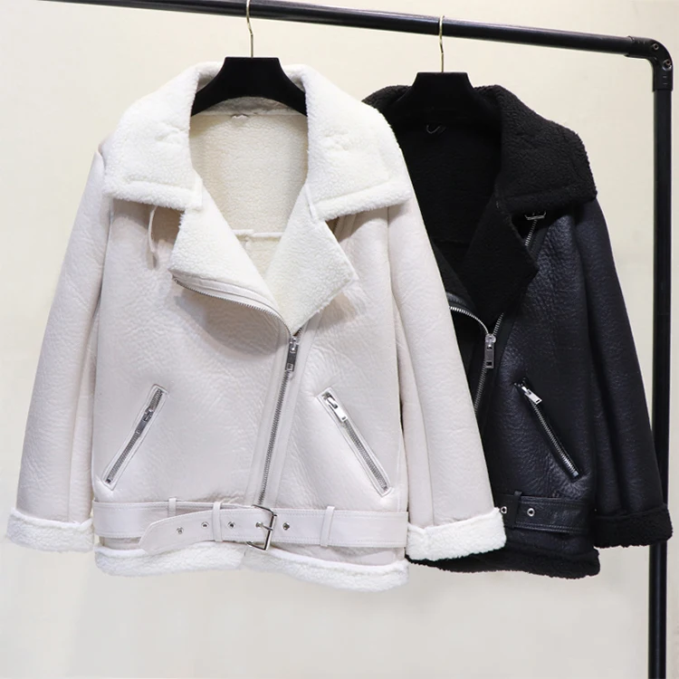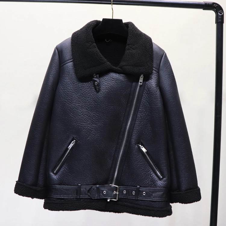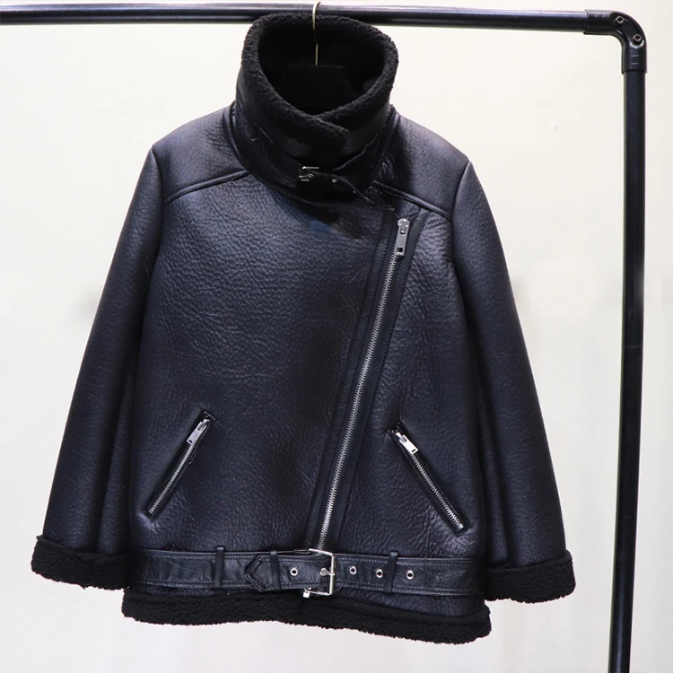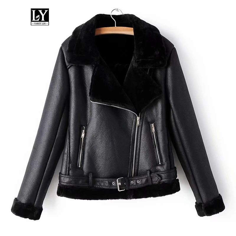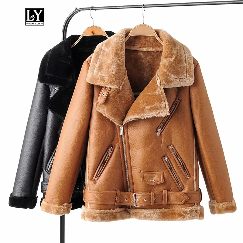 Женская зимняя куртка из искусственной овечьей кожи Ly Varey Lin, куртка из искусственной кожи на молнии с воротником из овечьей шерсти и меховым воротником из искусственной кожи, теплая толстая верхняя одежда