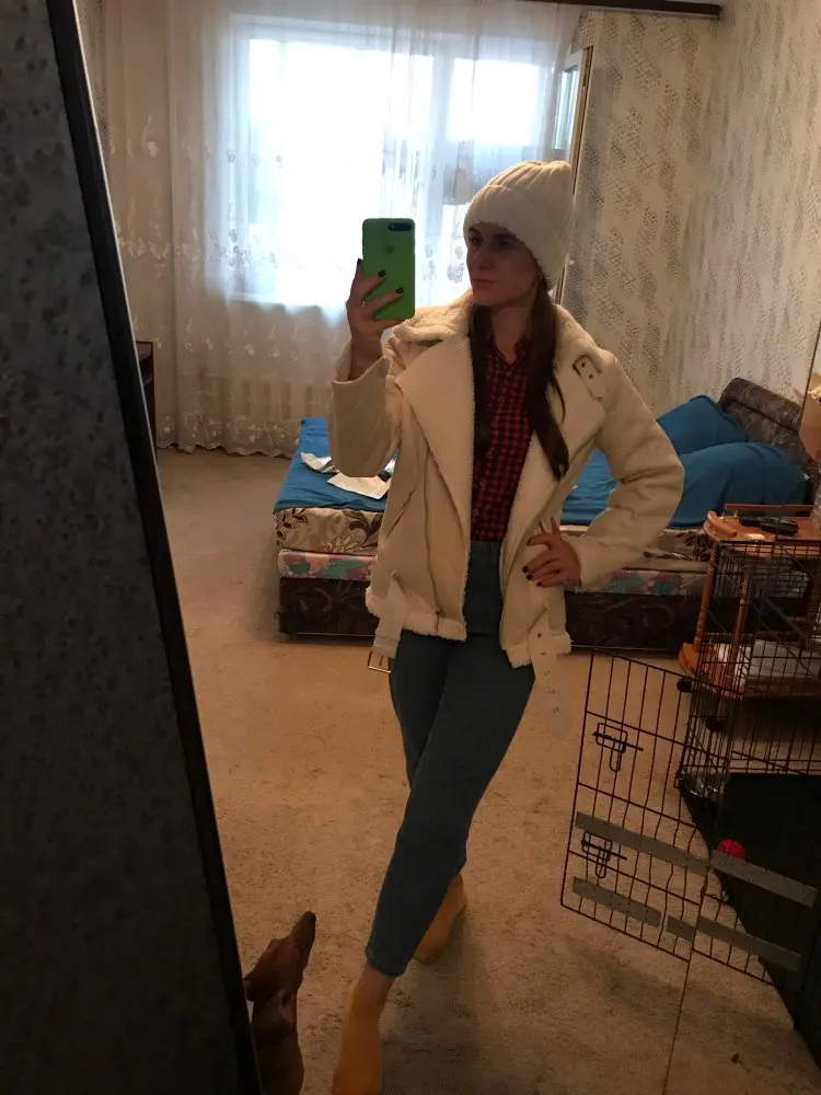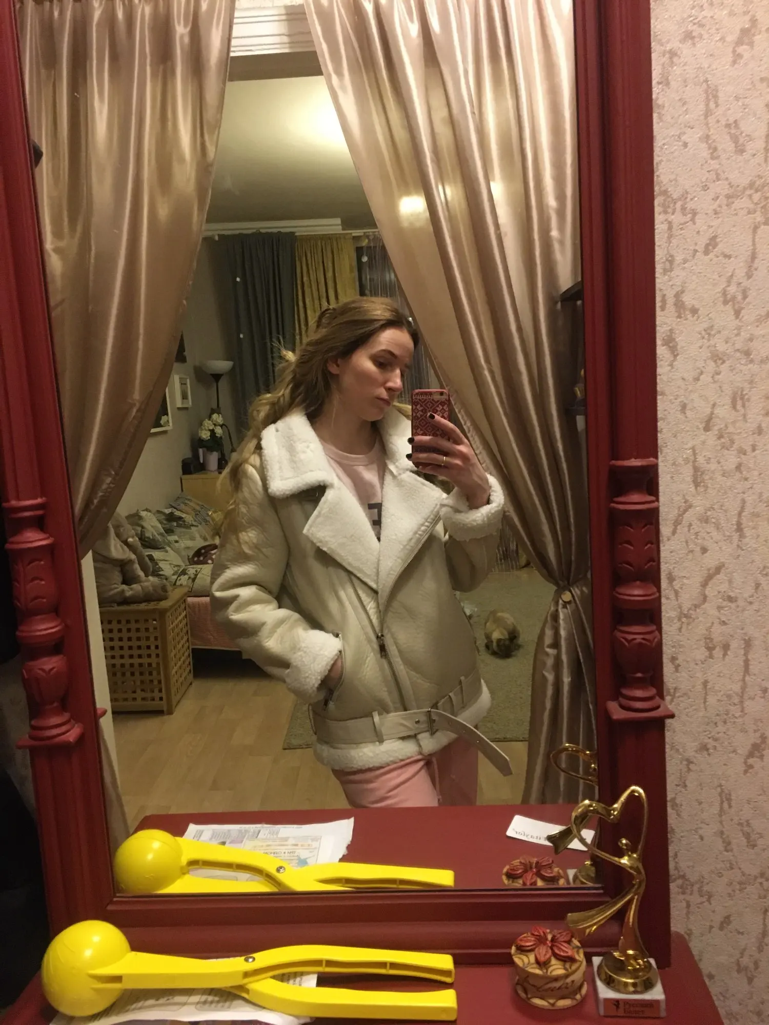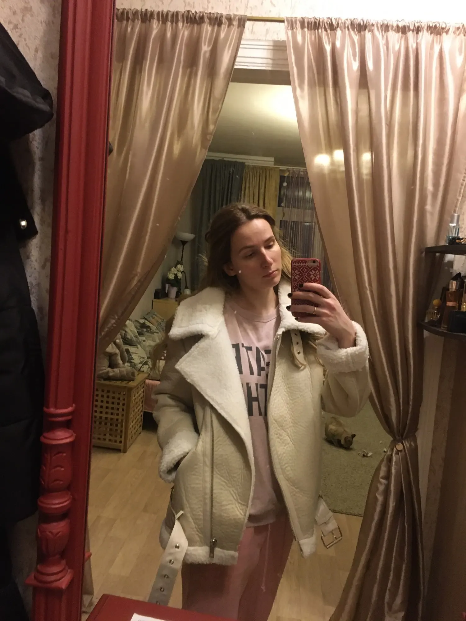 Дубленка понравилась, внешние швы ровные - это самое главное! Внутри, конечно, лишних ниток было много, но мне не сложно потратить пару минут на их обрезку, за это снижать звезду не буду и моя «корона» от этого не упадёт )) на ог 98 об 98 взяла xl села хорошо, но не оверсайз! У этого продавца эта дубленка не много маломерит, потому как покупала чёрную, в прошлом году, у другого продавца в размере l и они одинаковые. Единственное, что мне очень не хватает, так это петельки для фиксации пояса, потому как он вечно съезжает, если носить дубленку в расстегнутом виде. И ещё бесит, что пряжка дико звенит. Пришла до Москвы за 3 недели